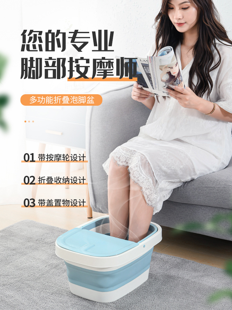 摺疊足浴盆泡腳盆洗腳盆家用電動按摩加熱泡腳桶摺疊批發
