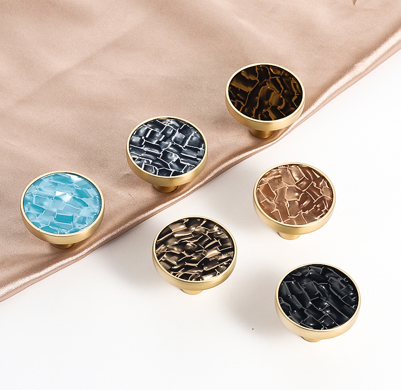 金色貝殼大理石拉手銅拉絲 掛鉤單孔 圓形北歐櫃門衣櫃櫥櫃門把手