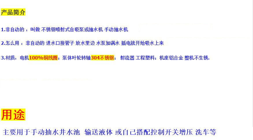 凌霄水泵220V家用304不鏽鋼自吸泵增壓水抽水泵高揚程BJZ037T