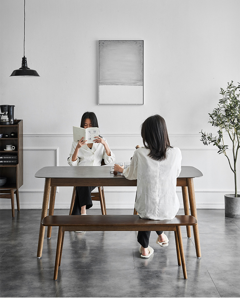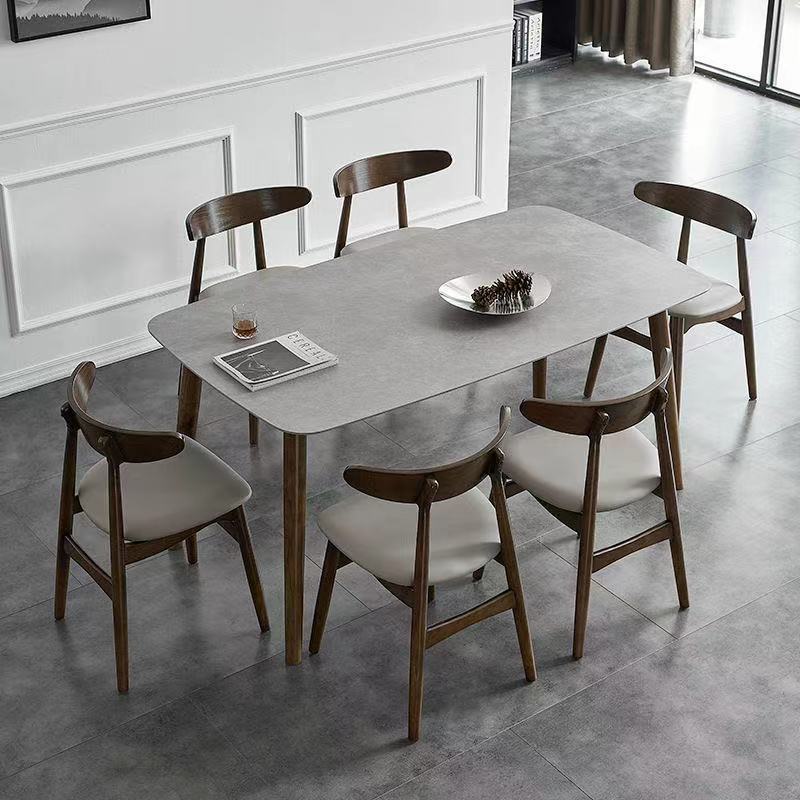 巖板餐桌家用小戶型餐廳吃飯桌子防刮白蠟木現代簡約輕奢桌椅組合