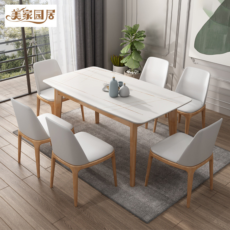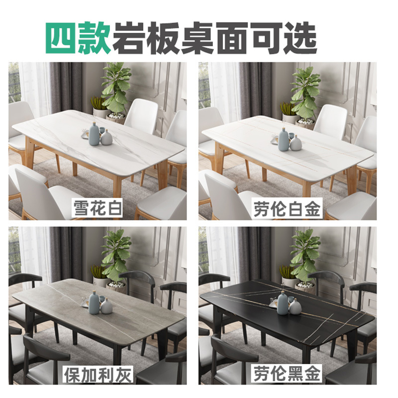 北歐巖板餐桌椅組合現代簡約全實木吃飯桌大小戶型家用長方形桌子
