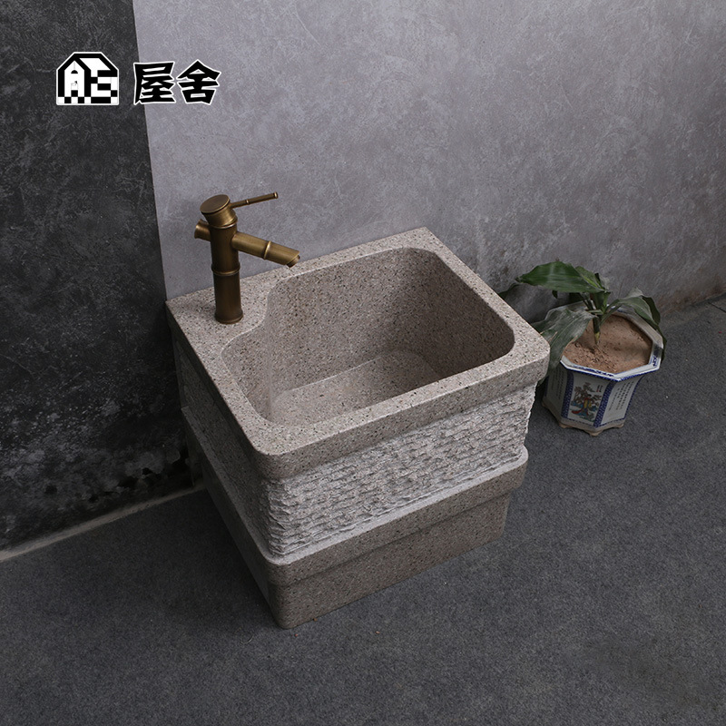 石頭拖把池大理石家用陽臺衛生間拖布池石材室戶外墩布池水槽家裝