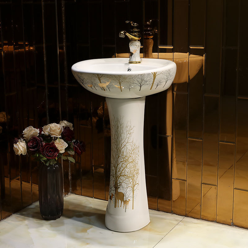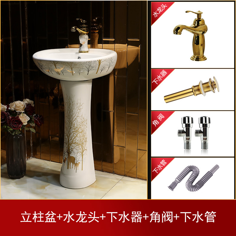 歐式陶瓷立柱式洗臉盆一體臺盆立柱盆衛生間立式家用落地式洗手盆