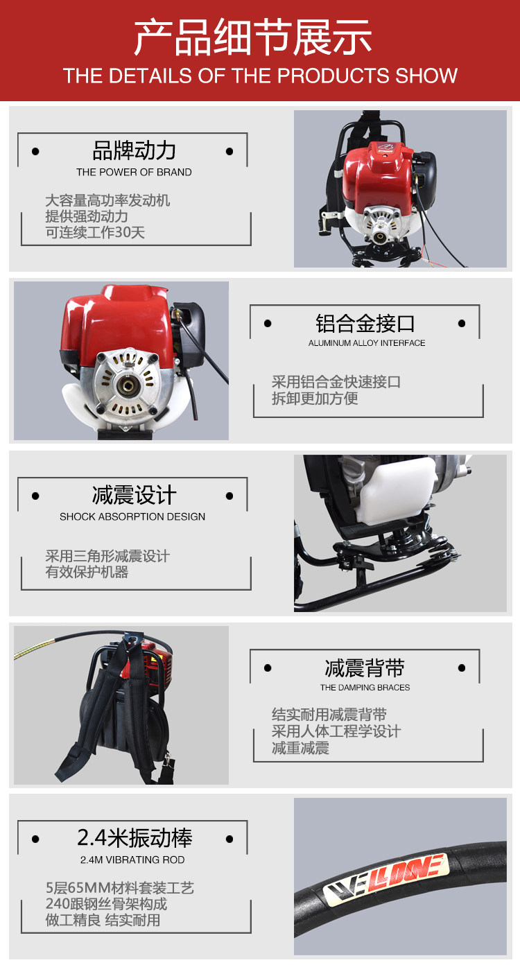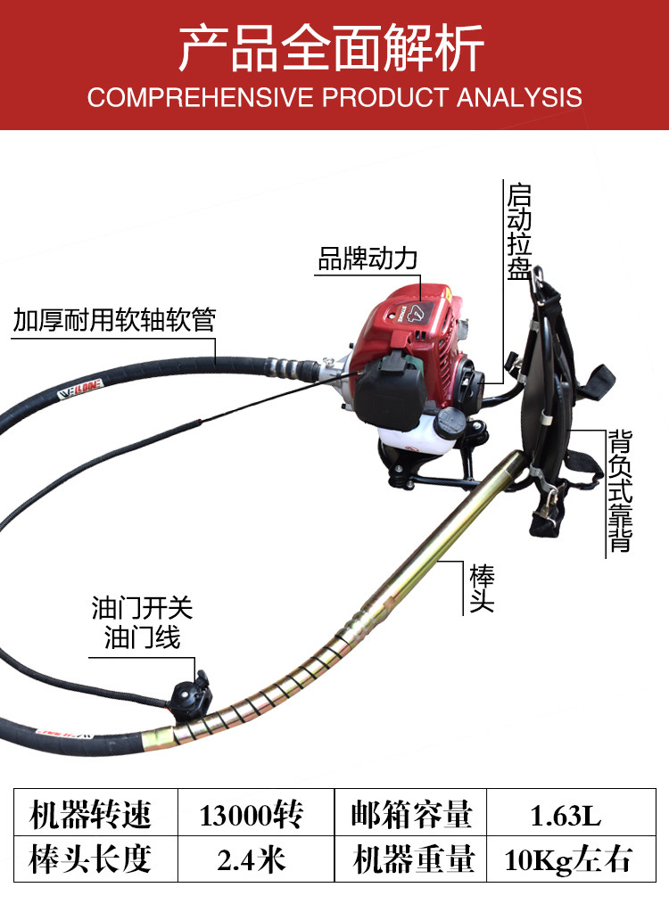 勝達汽油揹負式振動棒 混凝土振動器 便攜水泥砂漿插入式振搗器