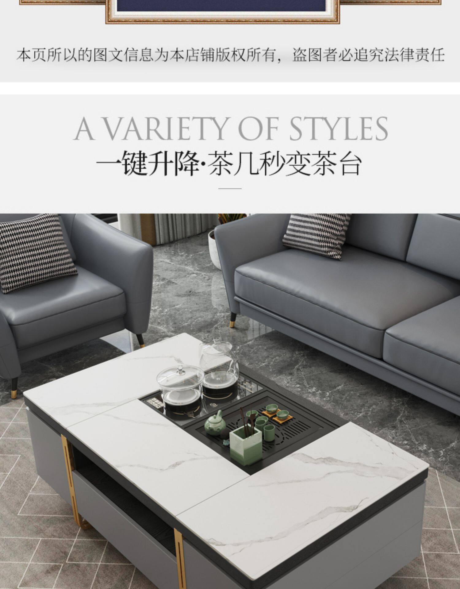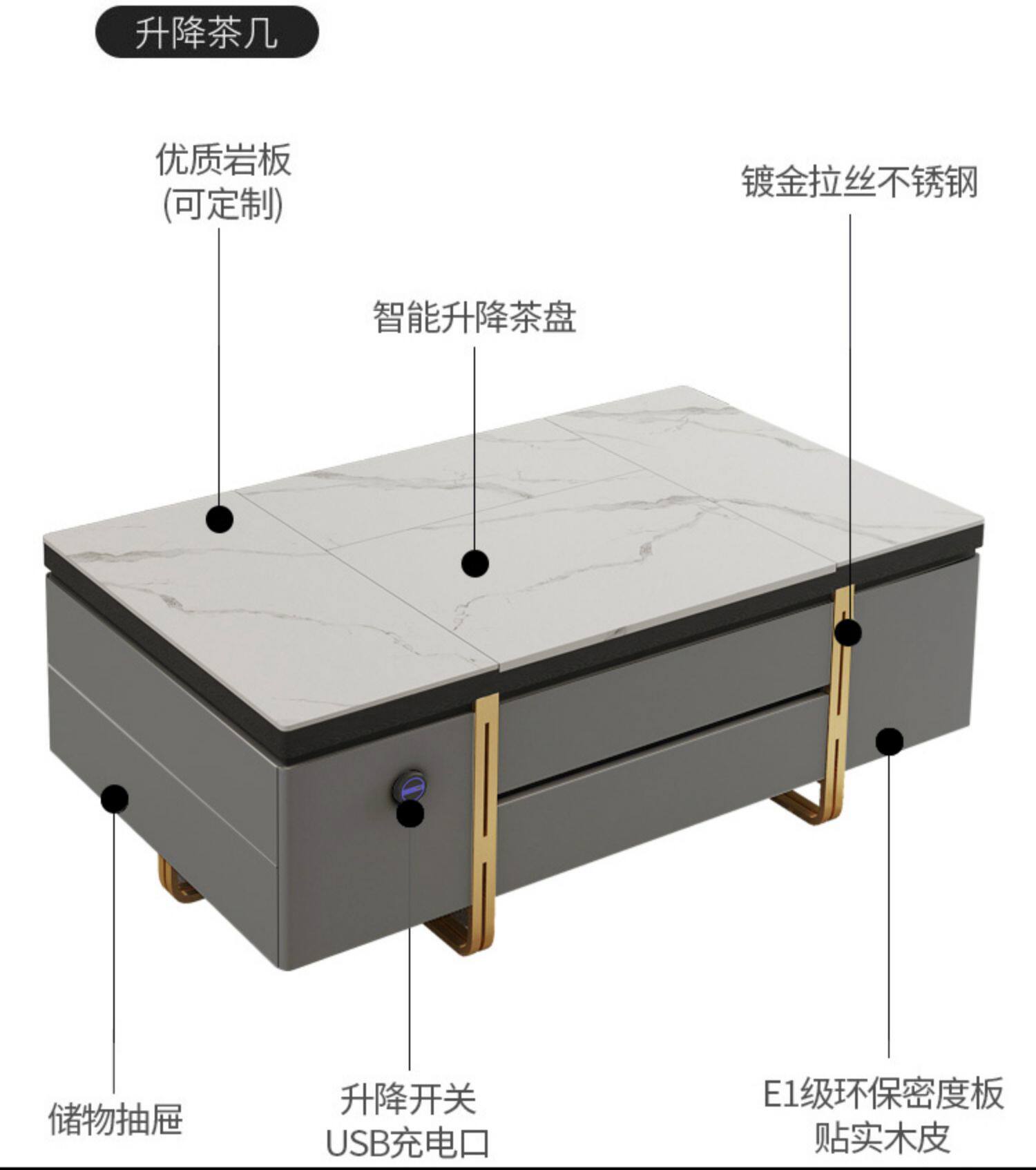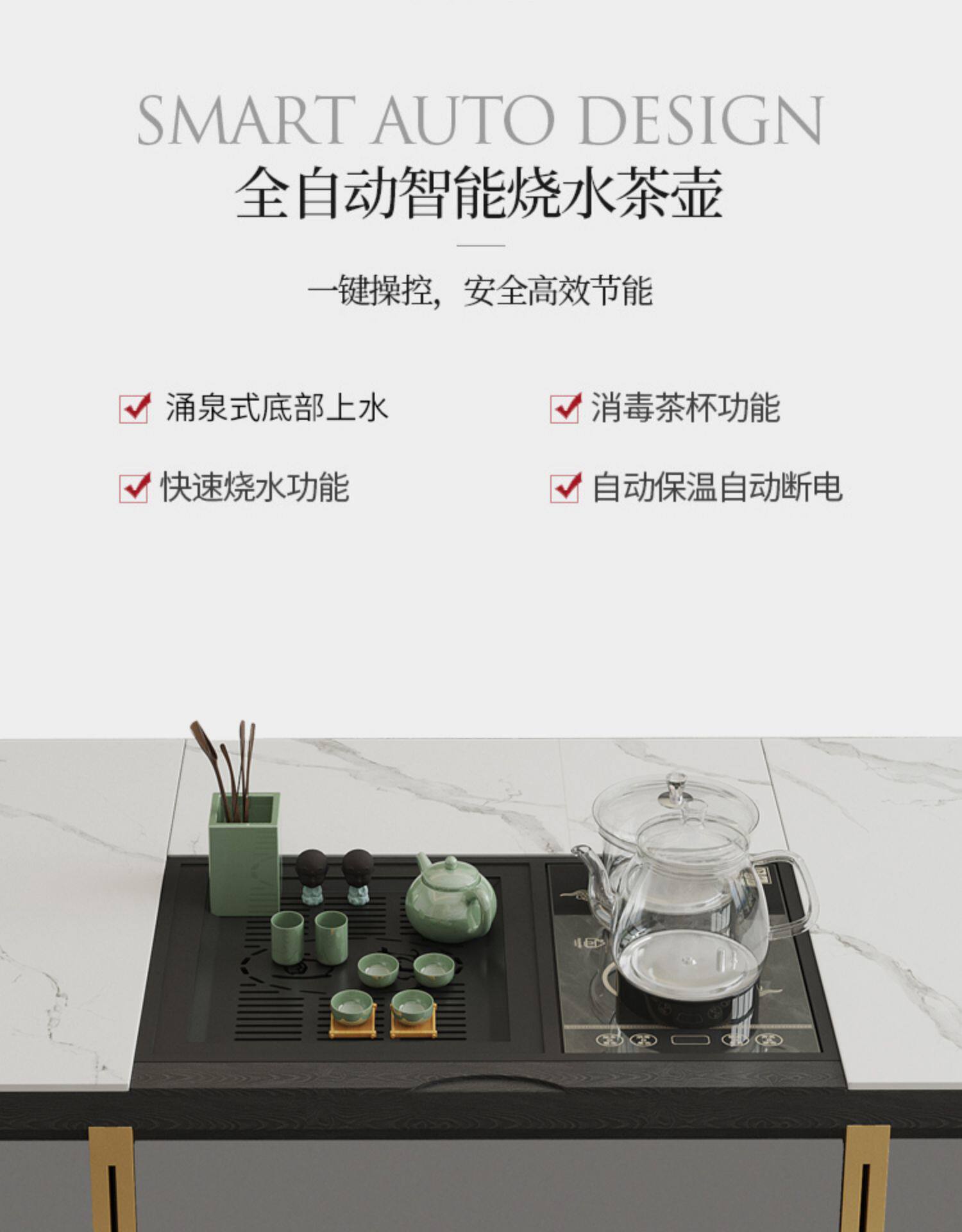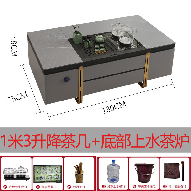 巖板智能升降茶几茶具套裝一體客廳小戶型茶臺輕奢自動泡茶桌組合