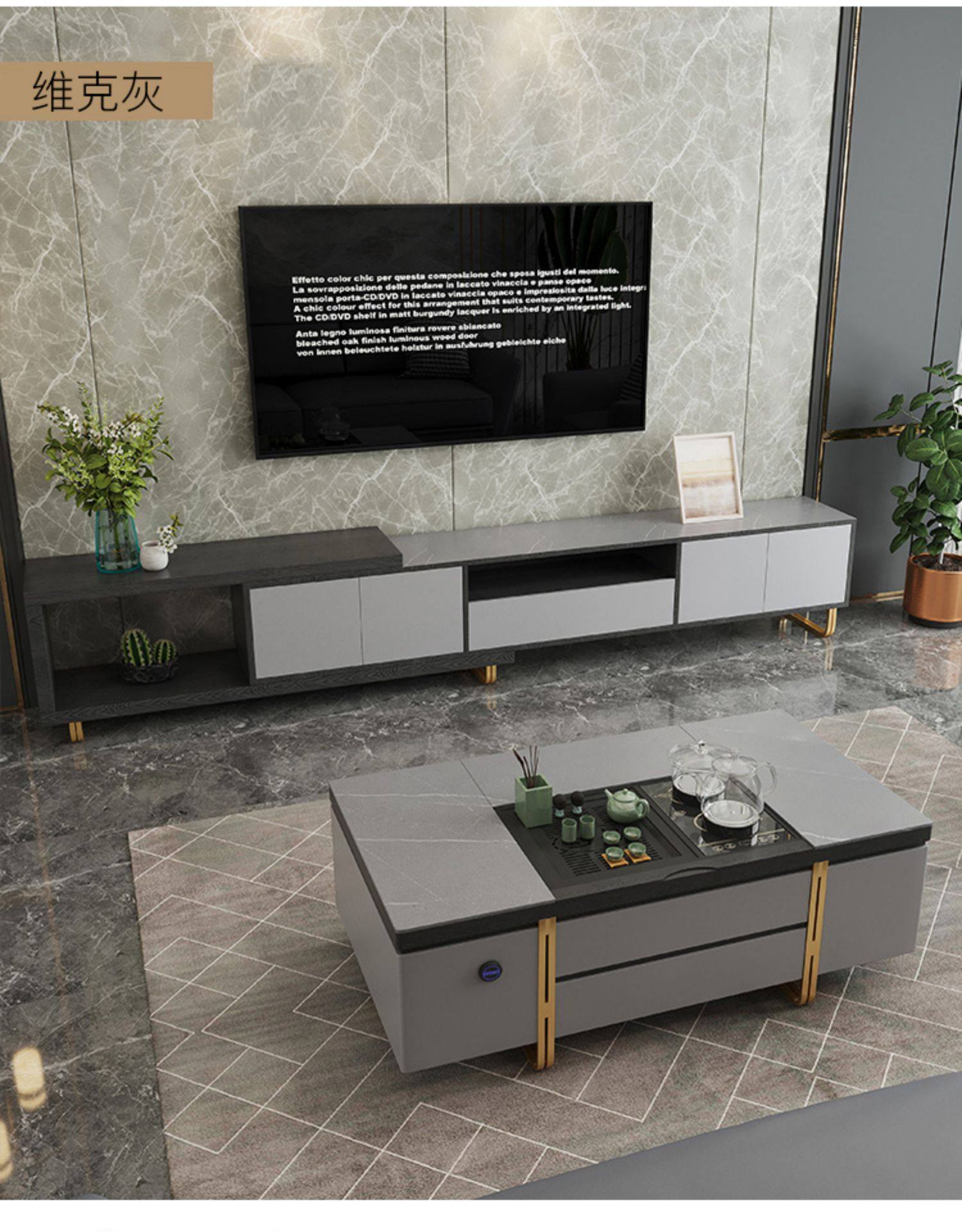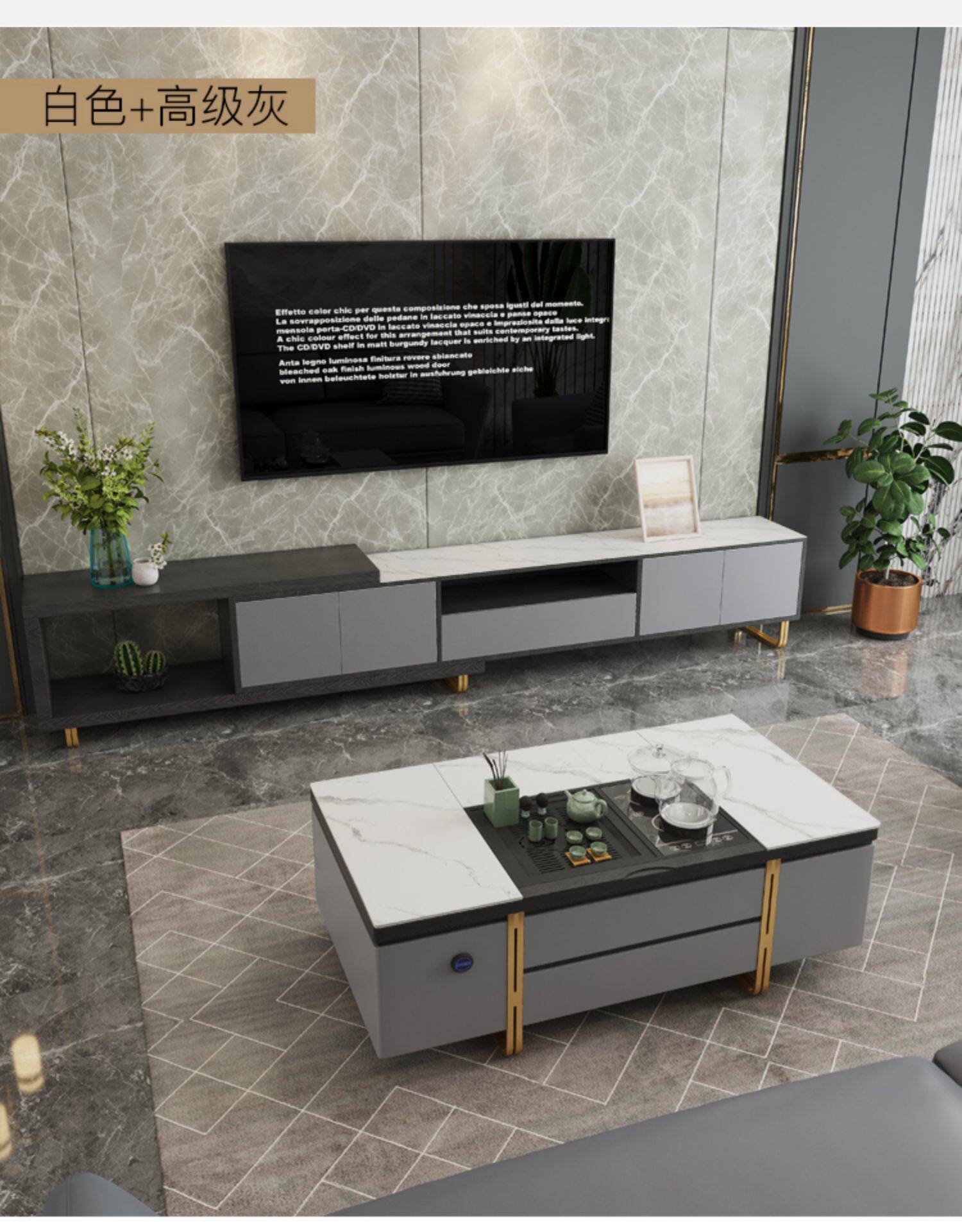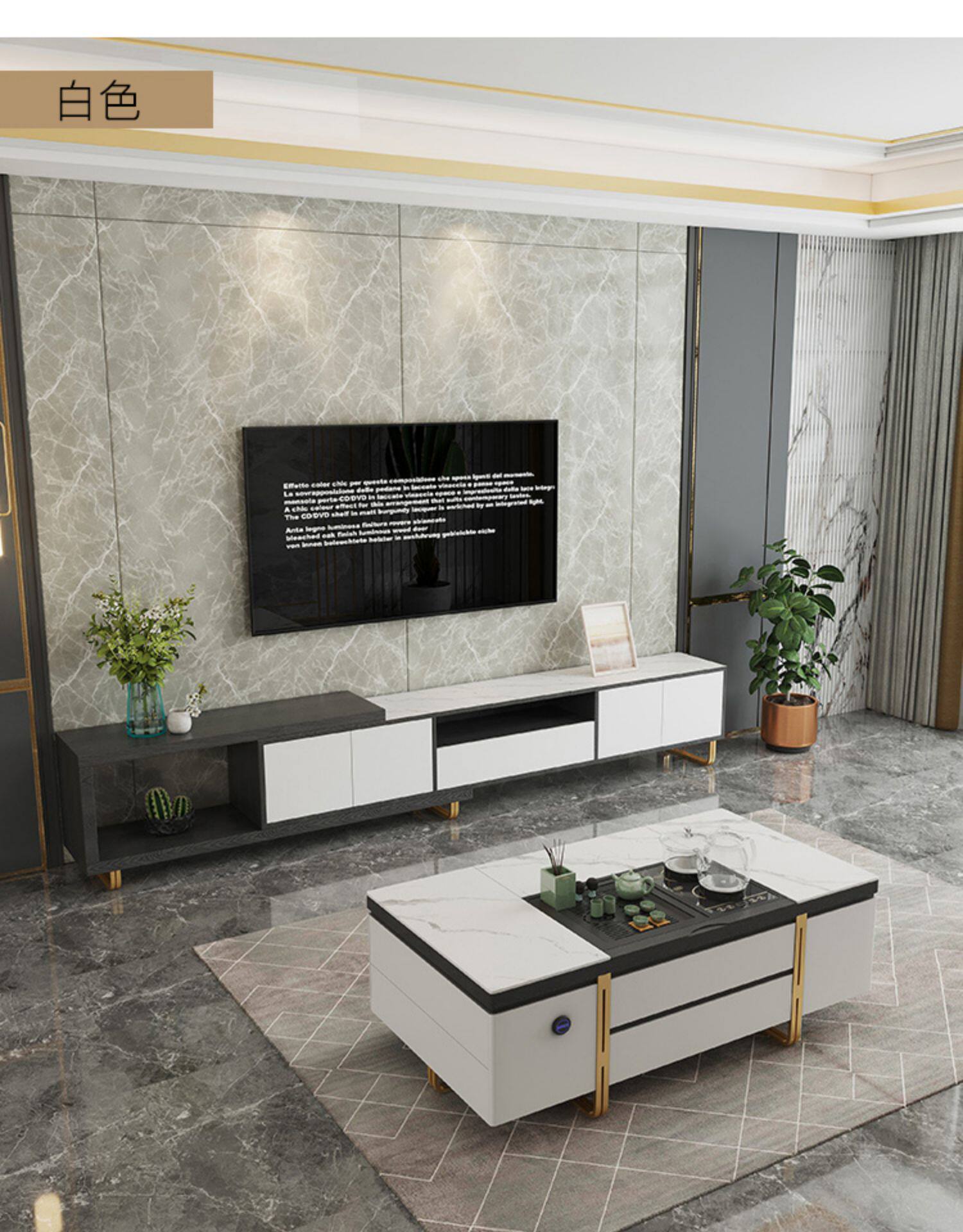 北歐巖板茶几電視櫃大小戶型家用簡約現代極簡茶几桌地櫃組合套裝
