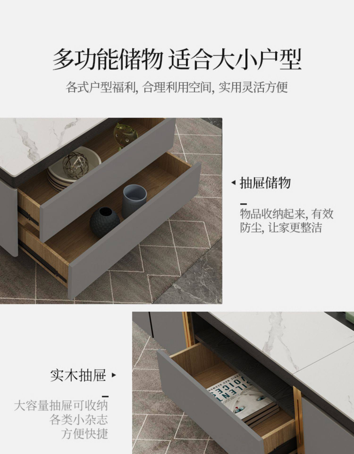 北歐簡約家用茶几電視櫃組合 現代小戶型客廳多功能儲物餐桌兩用