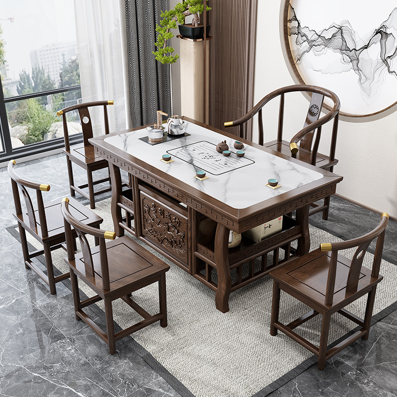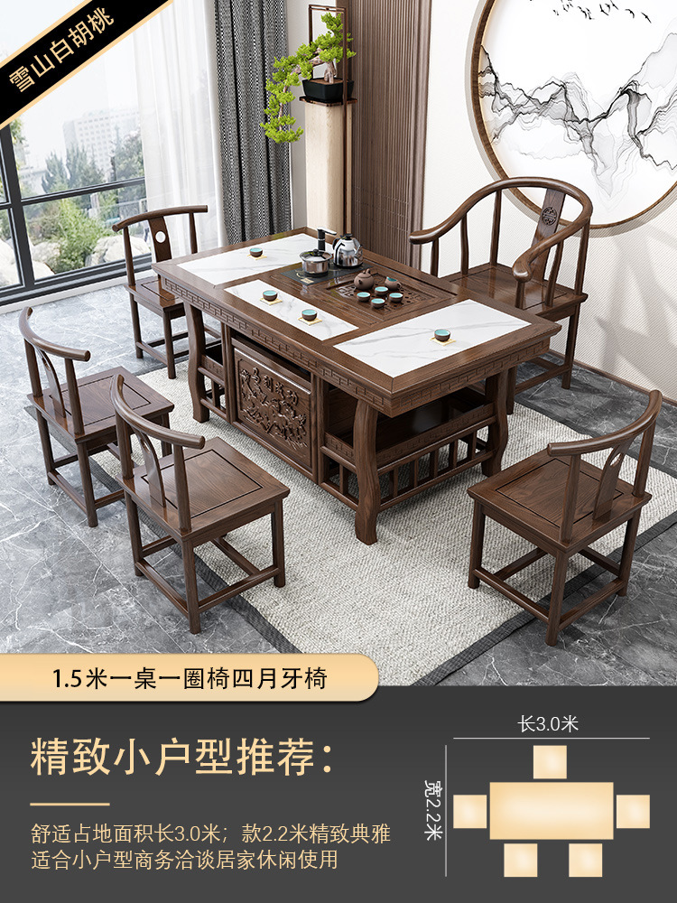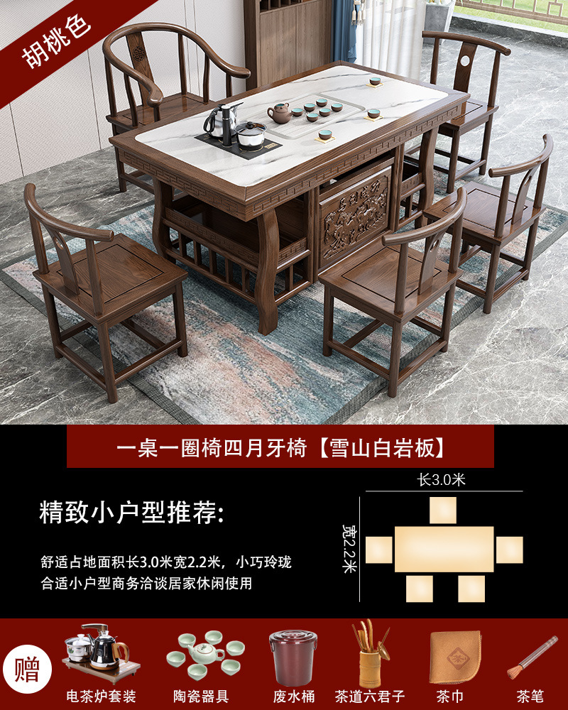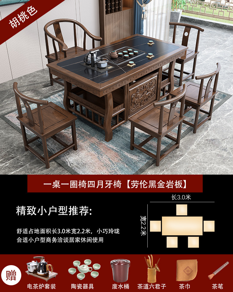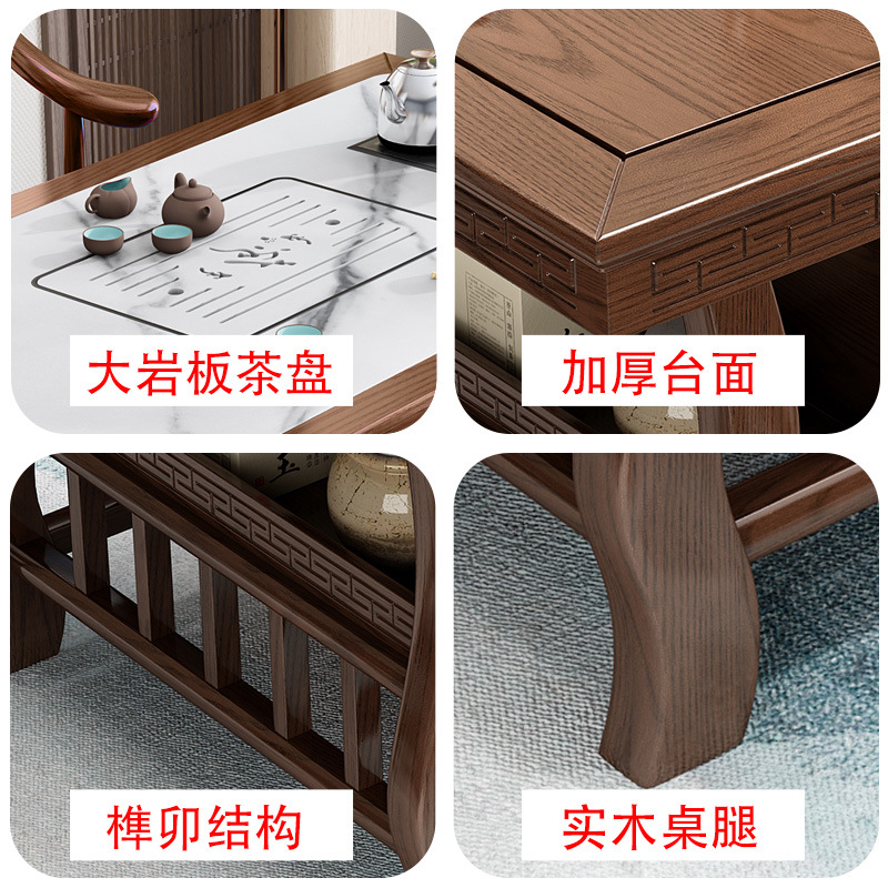 巖板茶桌椅組合簡約辦公泡茶臺功夫茶桌茶具套裝一體陽臺實木茶几