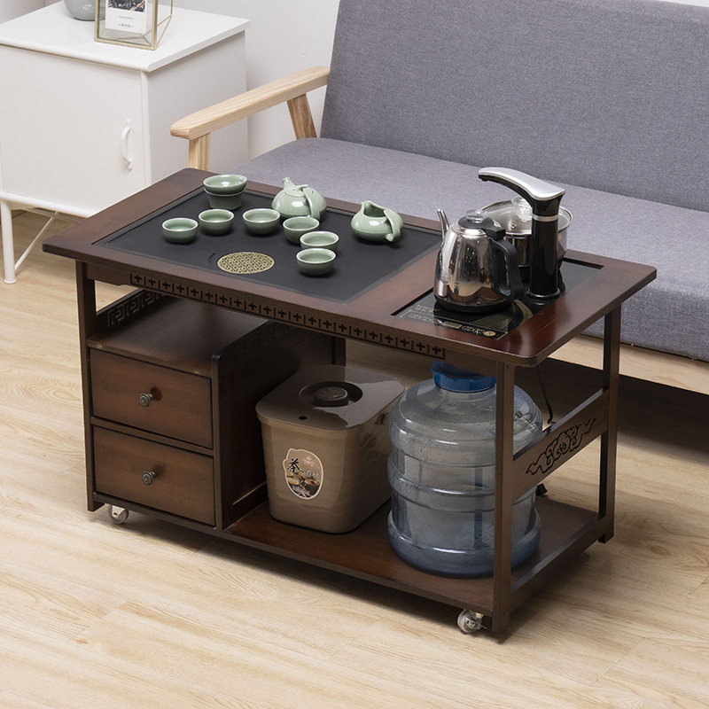 移動茶桌家用小型茶臺泡茶車邊櫃實木客廳矮茶几燒水一體茶水櫃子