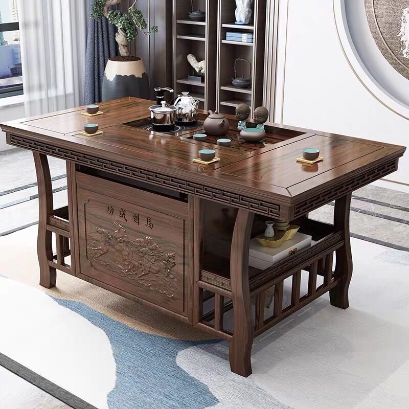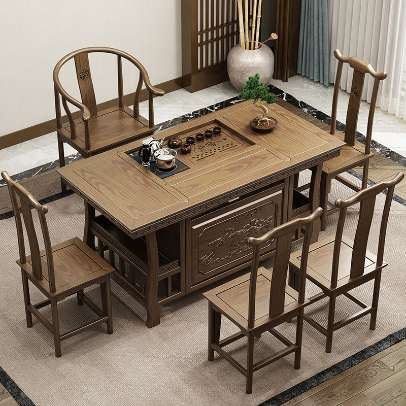 家用會客茶桌椅組合新中式泡茶臺辦公室茶臺客廳榆木茶桌茶具套裝