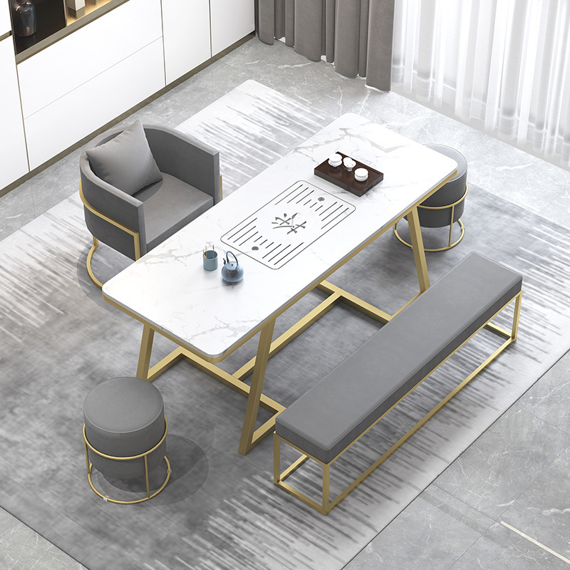 新中式巖板功夫茶桌椅組合現代簡約客廳茶桌辦公室大理石泡茶茶几