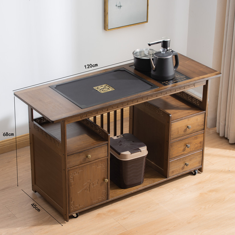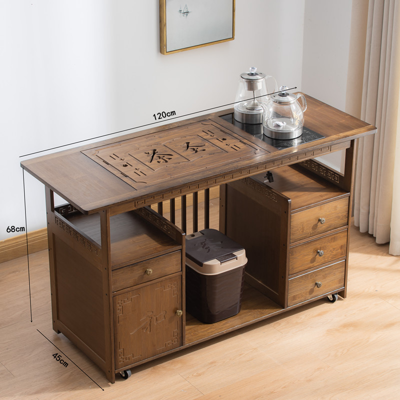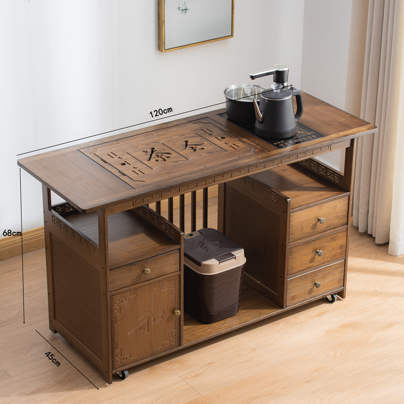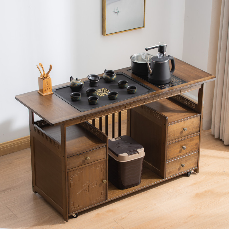 移動新中式茶桌家用小型茶几茶車泡茶臺泡茶車燒水一體茶水架櫃子
