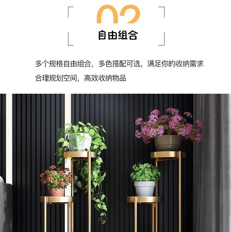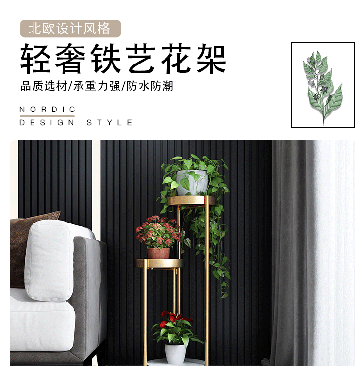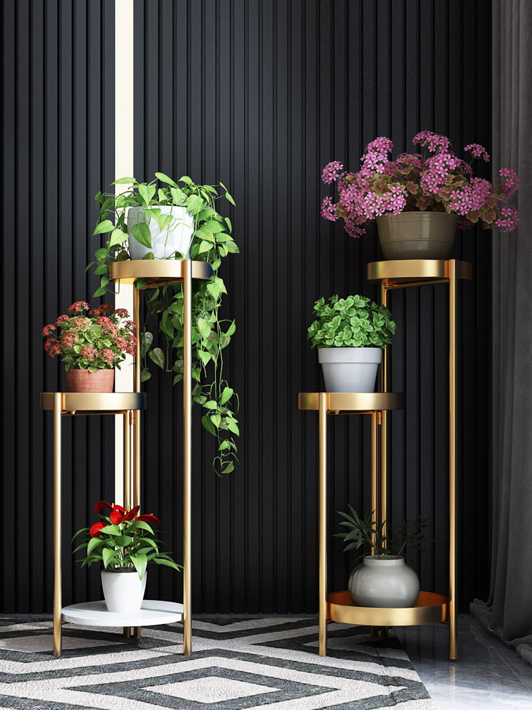 億家達花架子客廳落地式陽臺輕奢鐵藝花盆架多層綠蘿架植物擺放架