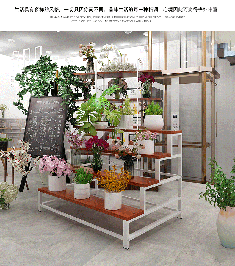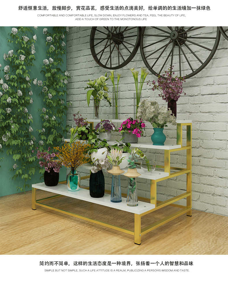 花店展示架陽臺鐵藝落地花架多層鮮花專用架子北歐花瓶花束花盆架