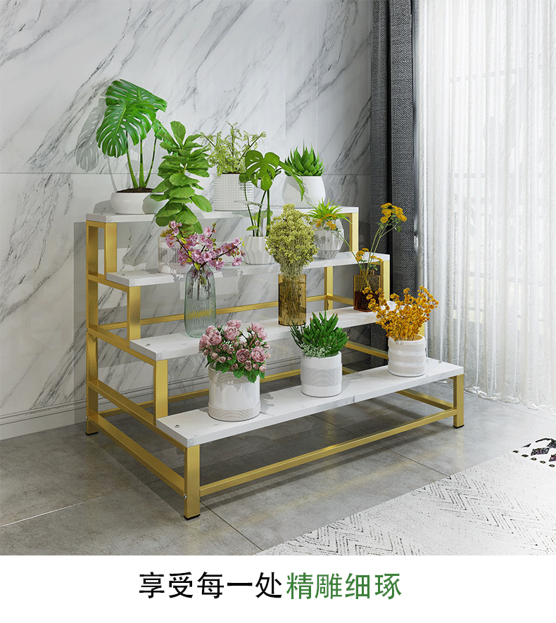 億家達花架子客廳落地式陽臺輕奢鐵藝花盆架多層綠蘿架植物擺放架