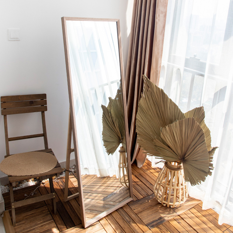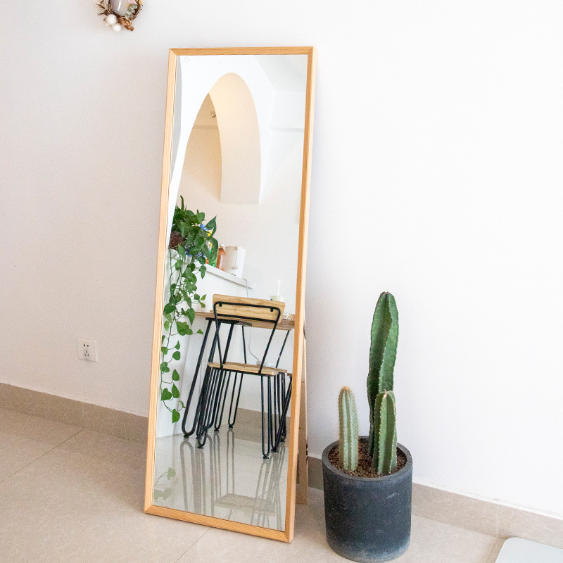 穿衣鏡臥室落地鏡全身鏡掛牆簡約原木色實木框服裝店試衣鏡大鏡子