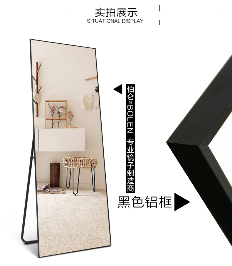 BOLEN 鋁框穿衣鏡子全身試衣鏡落地鏡立體服裝店大鏡子壁掛防爆鏡