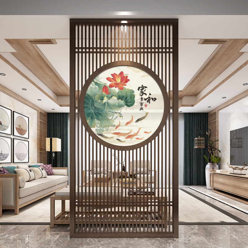 實木新中式屏風隔斷櫃客廳入戶玄關臥室遮擋門家用雕花格柵欄輕奢