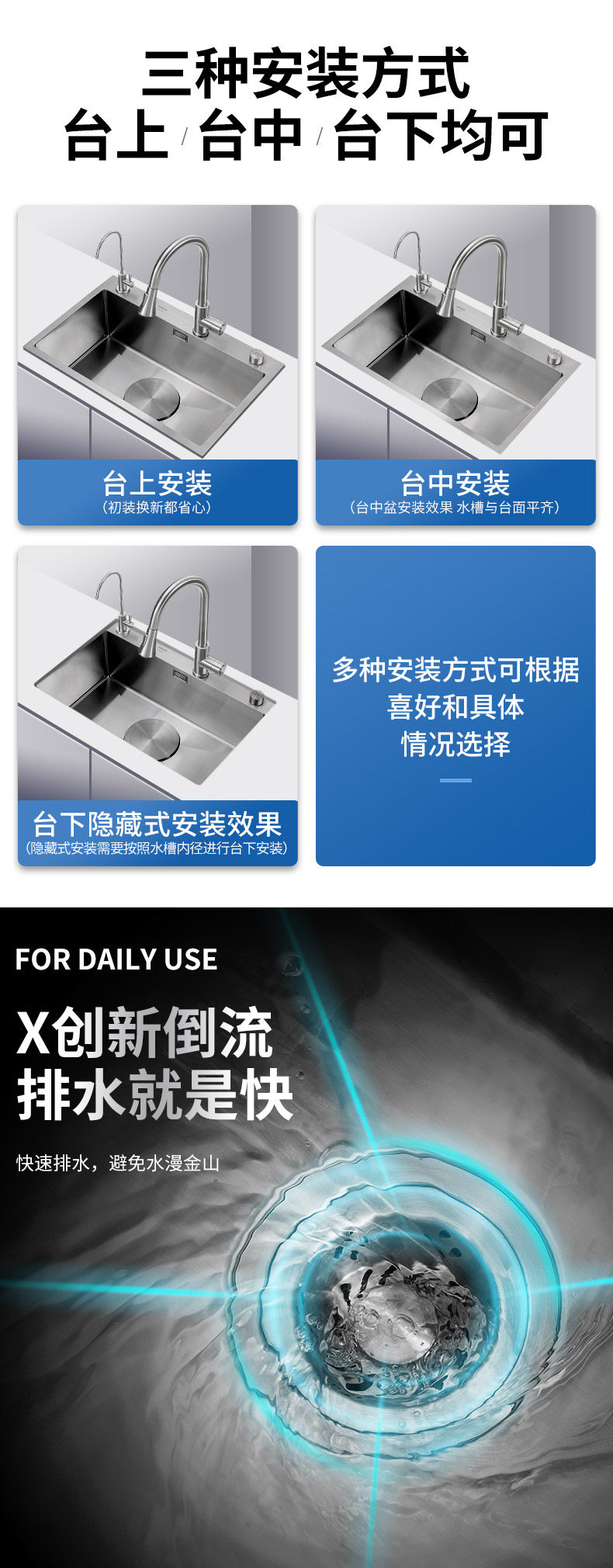 304不鏽鋼水槽單槽臺下盆嵌入式手工盆廚房洗手洗菜盆單槽大小號