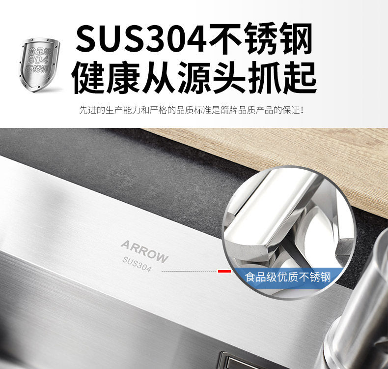 箭牌不鏽鋼納米水槽洗碗槽水池大洗菜盆單槽臺下盆廚房嵌入式家用
