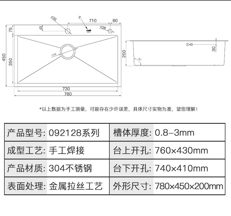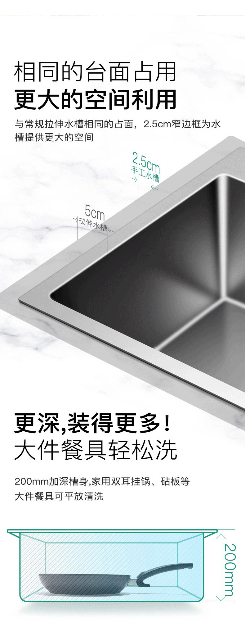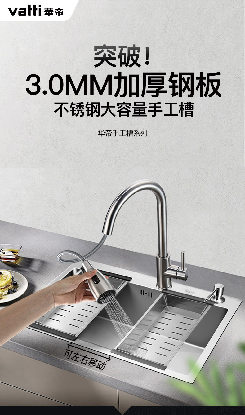 華帝手工水槽單槽加大廚房不鏽鋼水池臺下盆嵌入式洗菜盆大號加厚