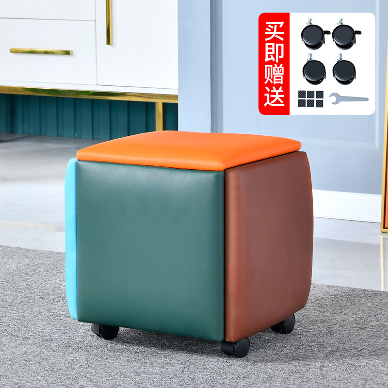 小凳子家用魔方椅五合一沙發凳客廳組合凳子皮革方形椅子換鞋凳