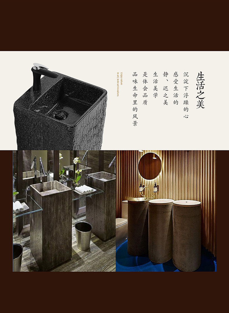 黑色家用立柱盆戶外一體式柱盆立式落地洗臉盆小戶型衛生間洗手盆