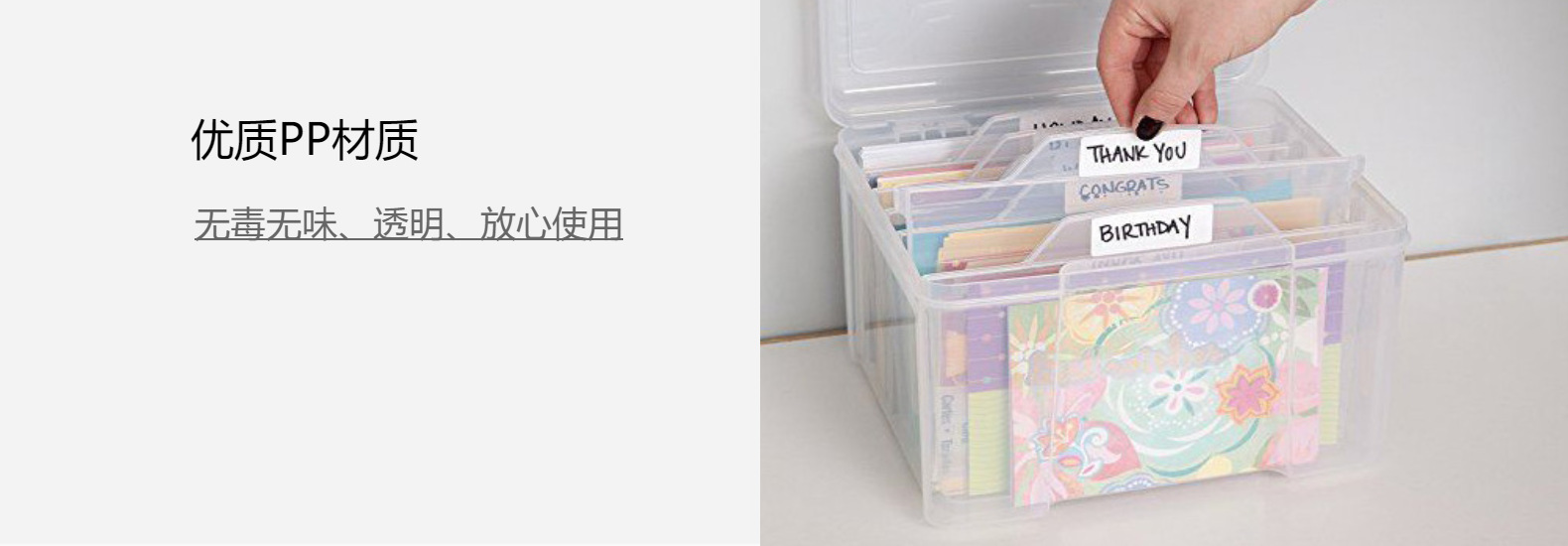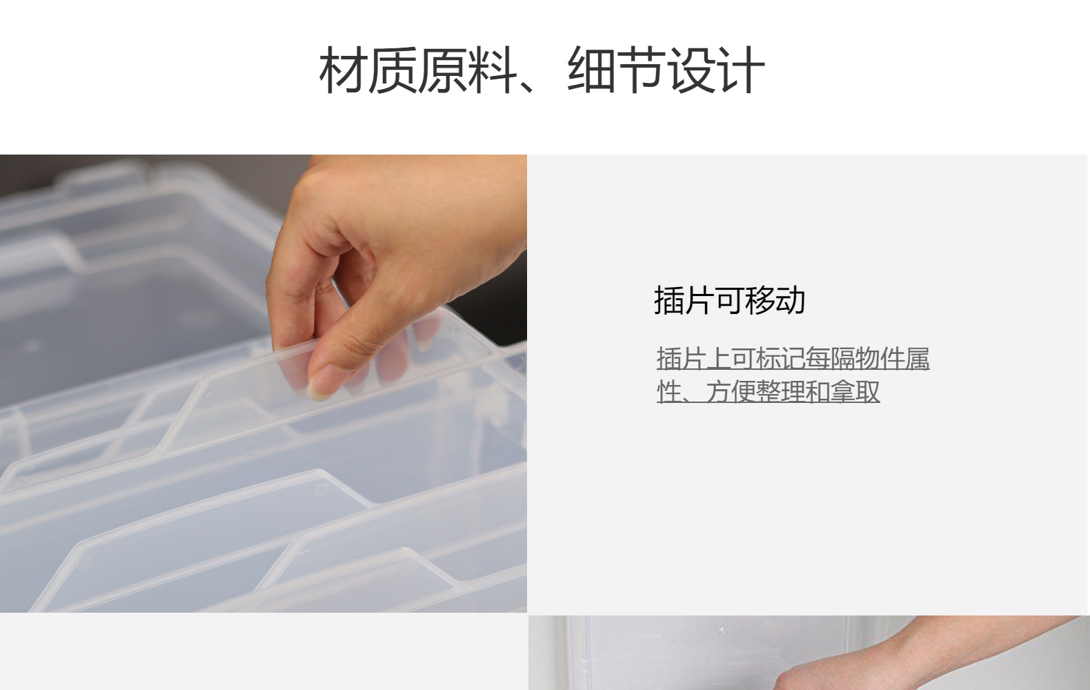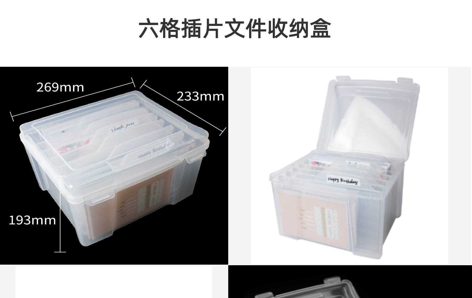 29575 照片收納文件收納盒帶6格可移插片分類整理塑料手提收納箱