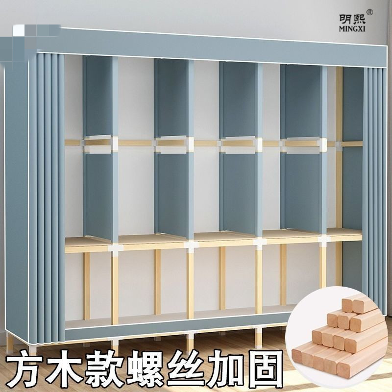 簡易實木衣櫃便捷布衣櫃木質衣櫥家用臥室出租房衣櫃螺絲加固拆裝