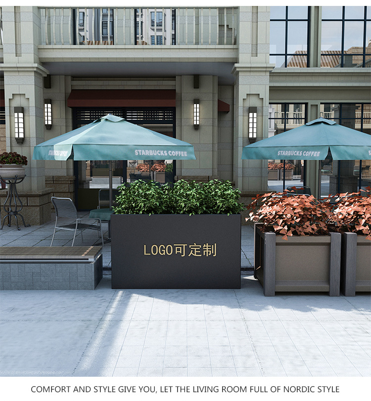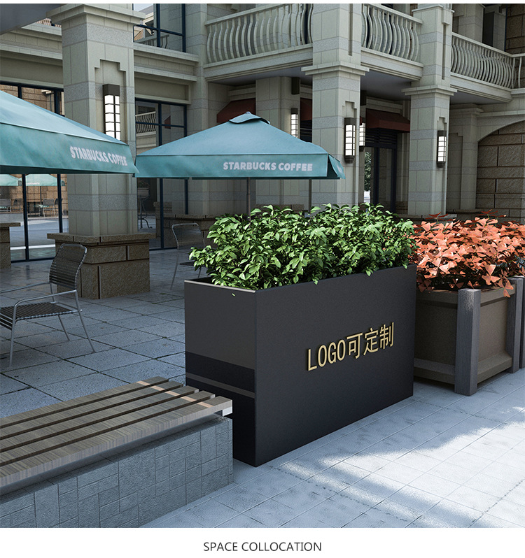 戶外鐵藝花箱種植箱不鏽鋼花盆組合售樓部廣場隔斷花槽室外花壇