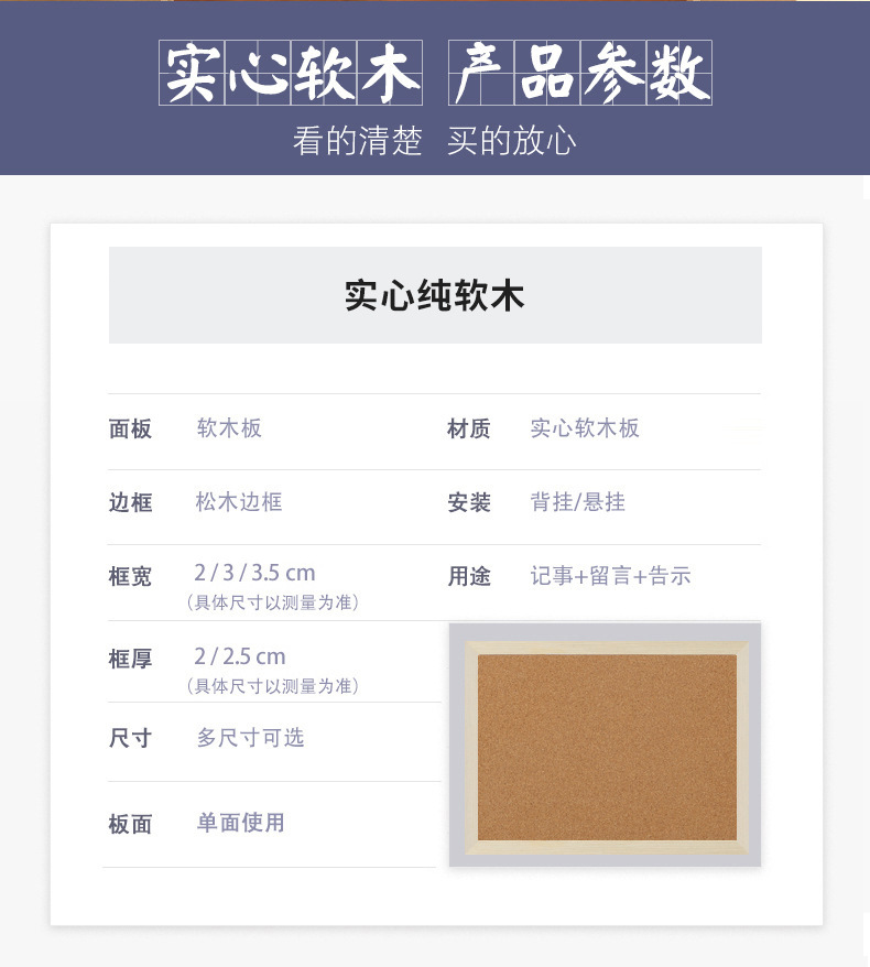 brandland實芯加厚ins風背景牆木框留言掛牆公告展示軟木板照片牆