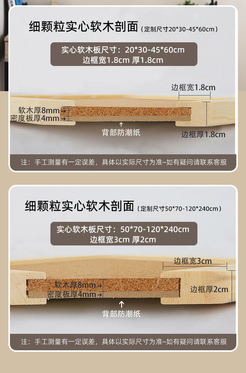 定製碎花實芯ins風照片牆工廠直營留言記事板掛式家用木框軟木板