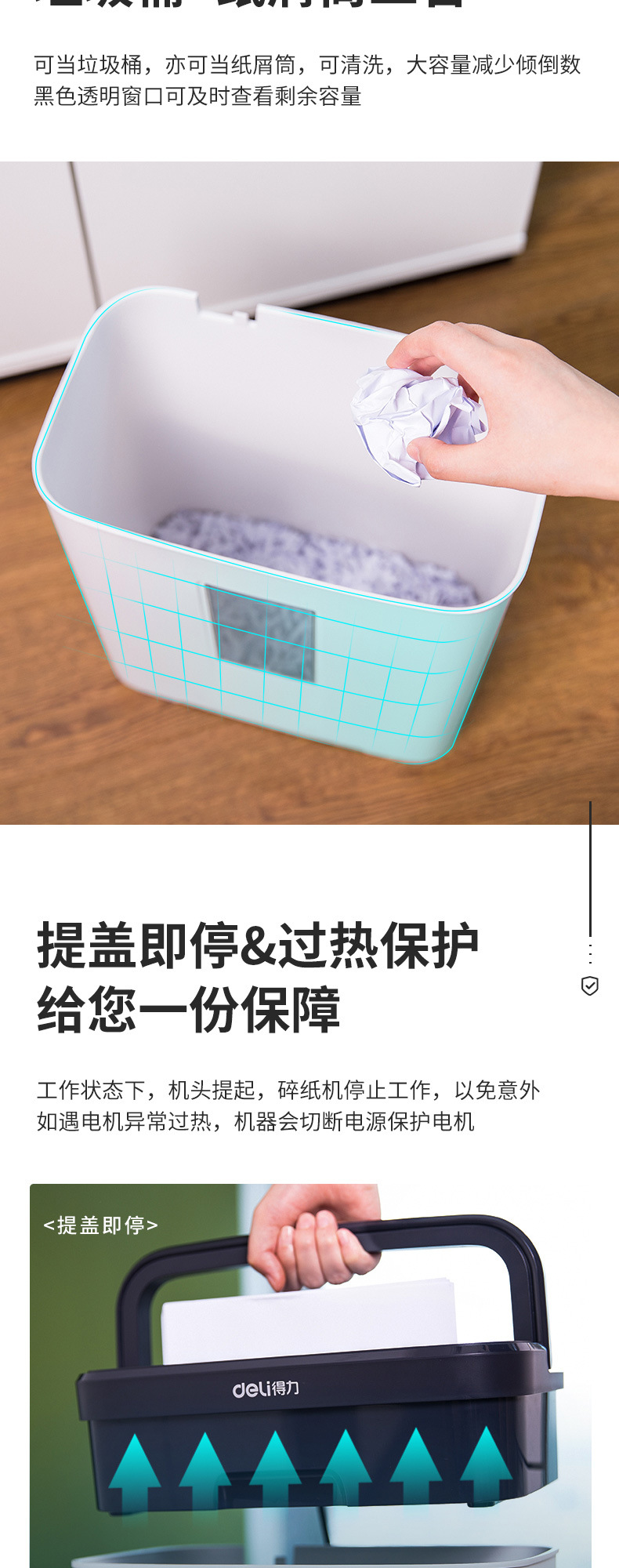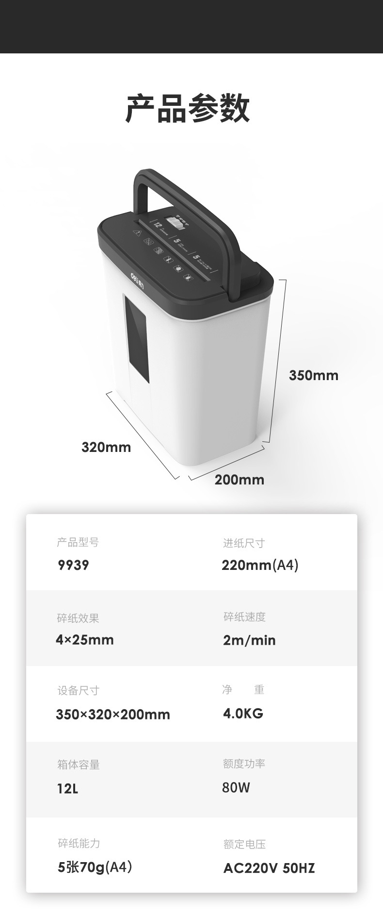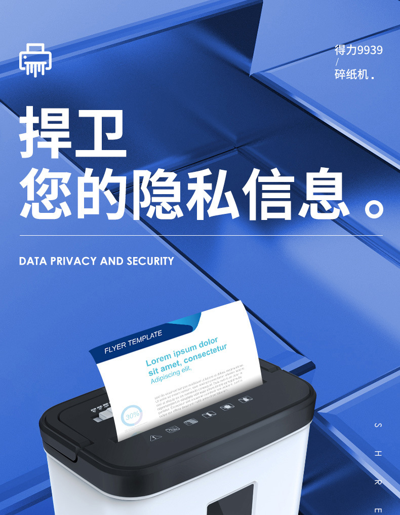 得力9939碎紙機12L小型便攜4級保密顆粒紙張粉碎機辦公用品批發
