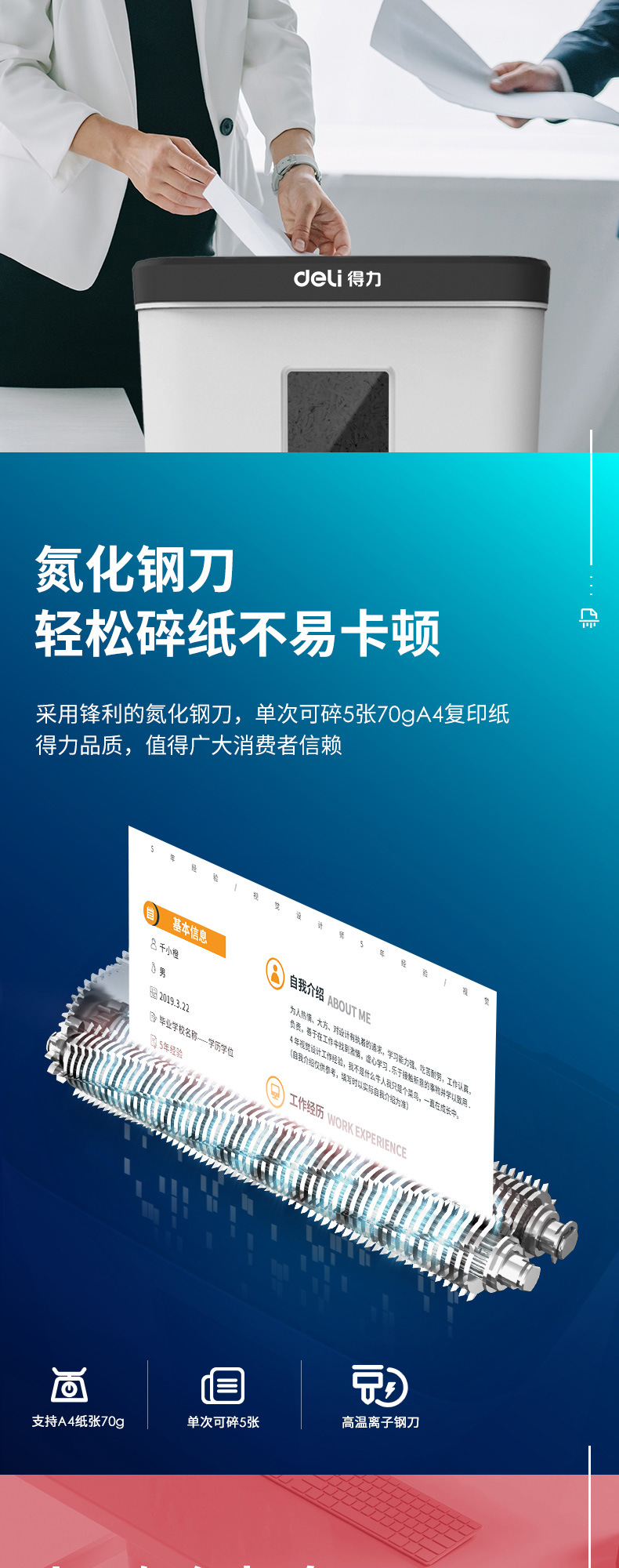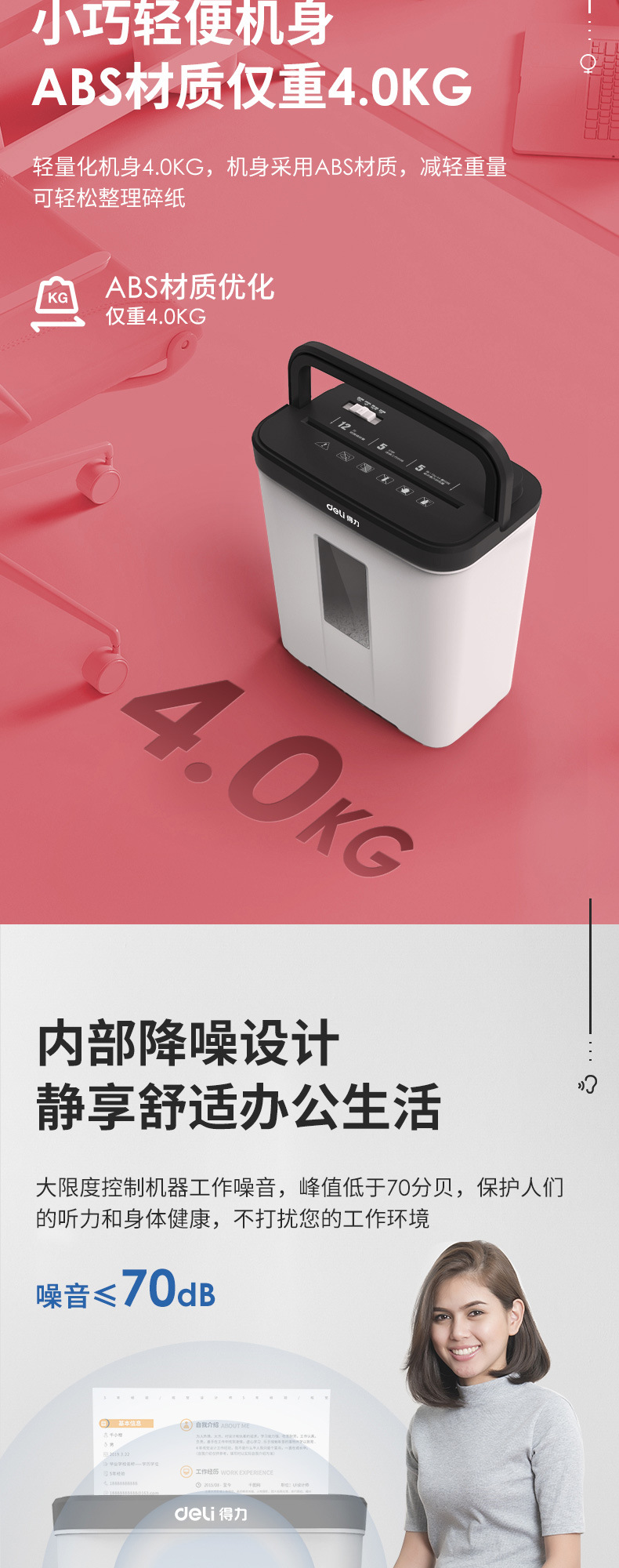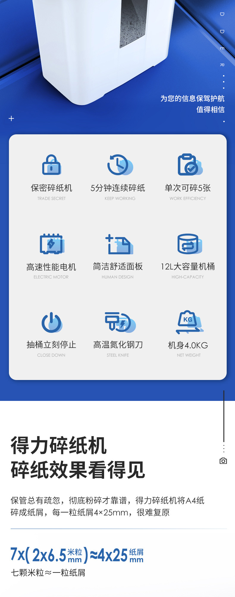 得力9939碎紙機12L小型便攜4級保密顆粒紙張粉碎機辦公用品批發