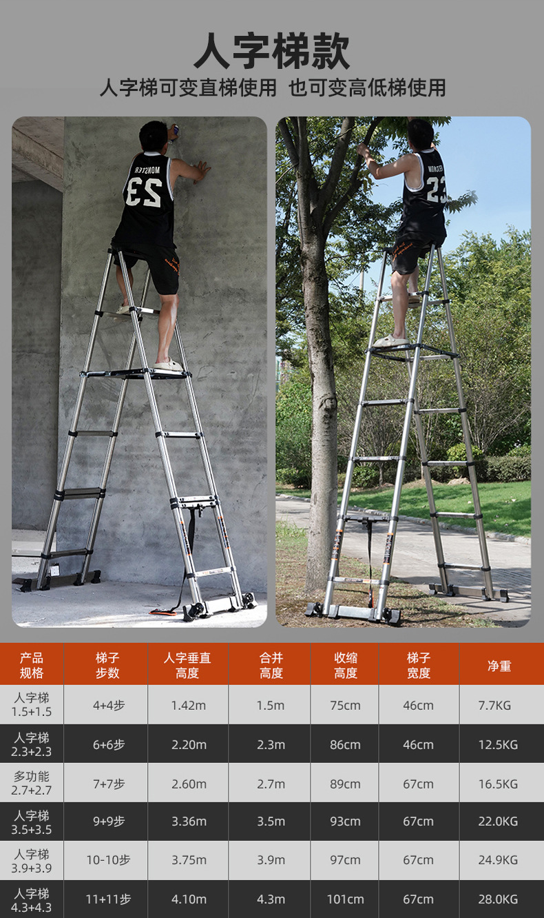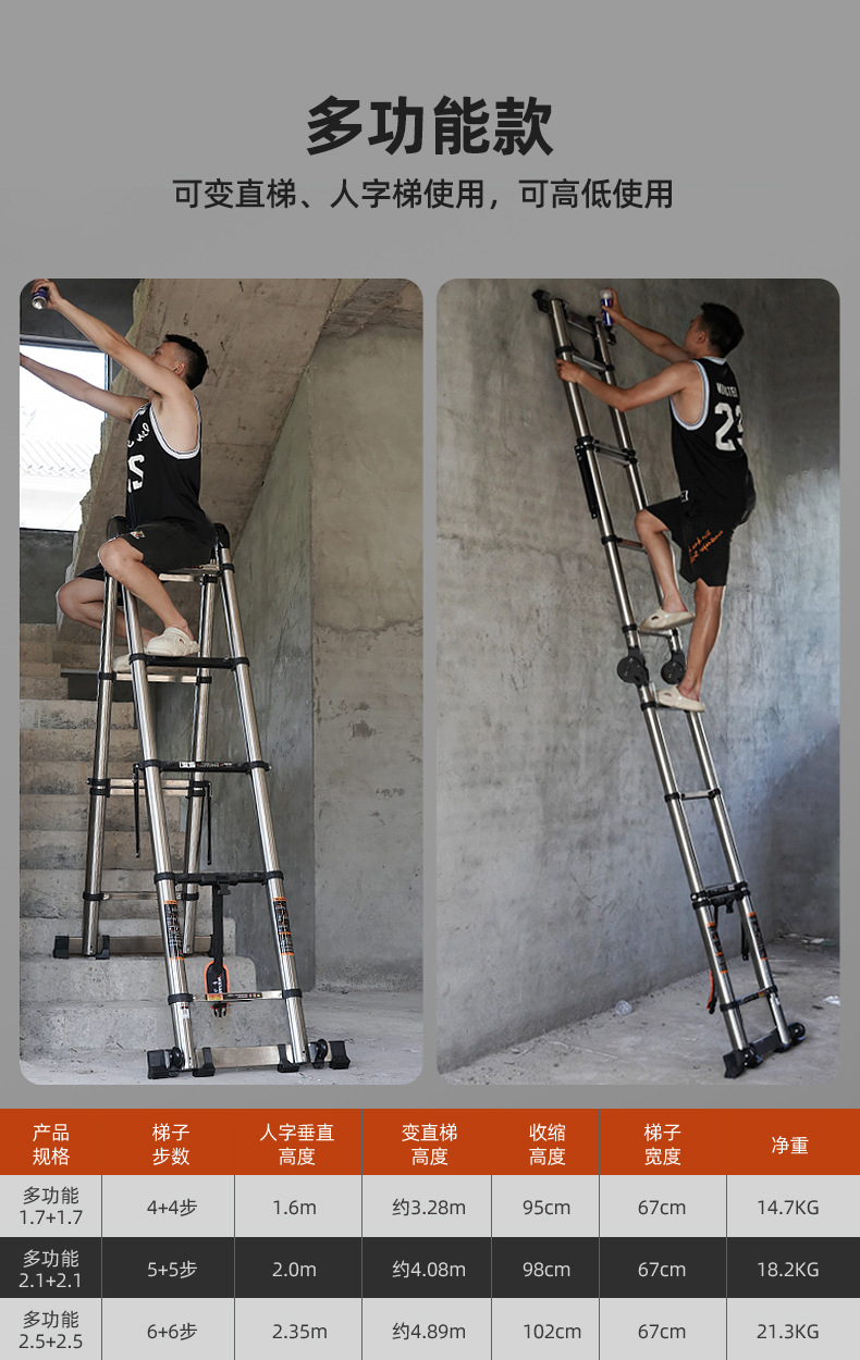 家用不鏽鋼伸縮梯子人字梯加厚摺疊梯多功能升降工程樓梯廠家批發