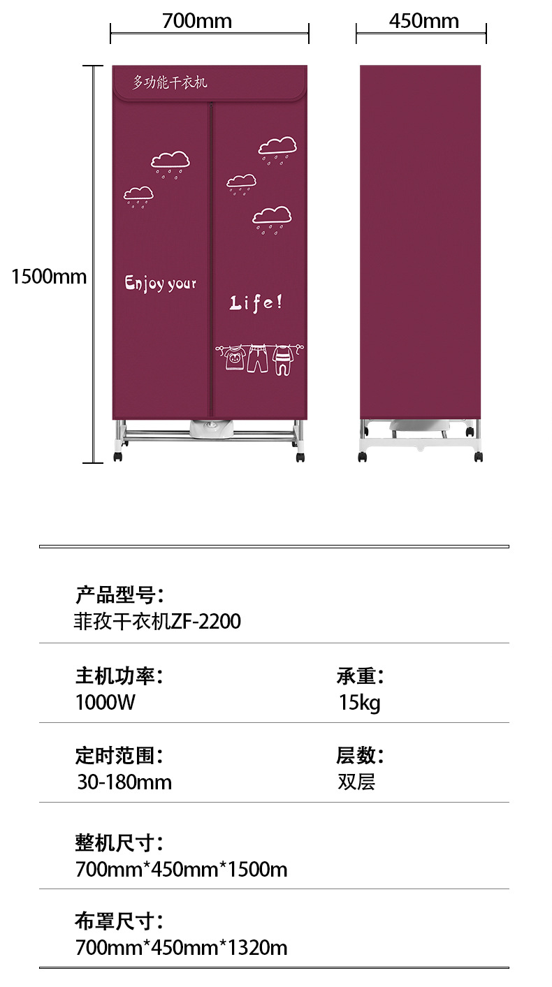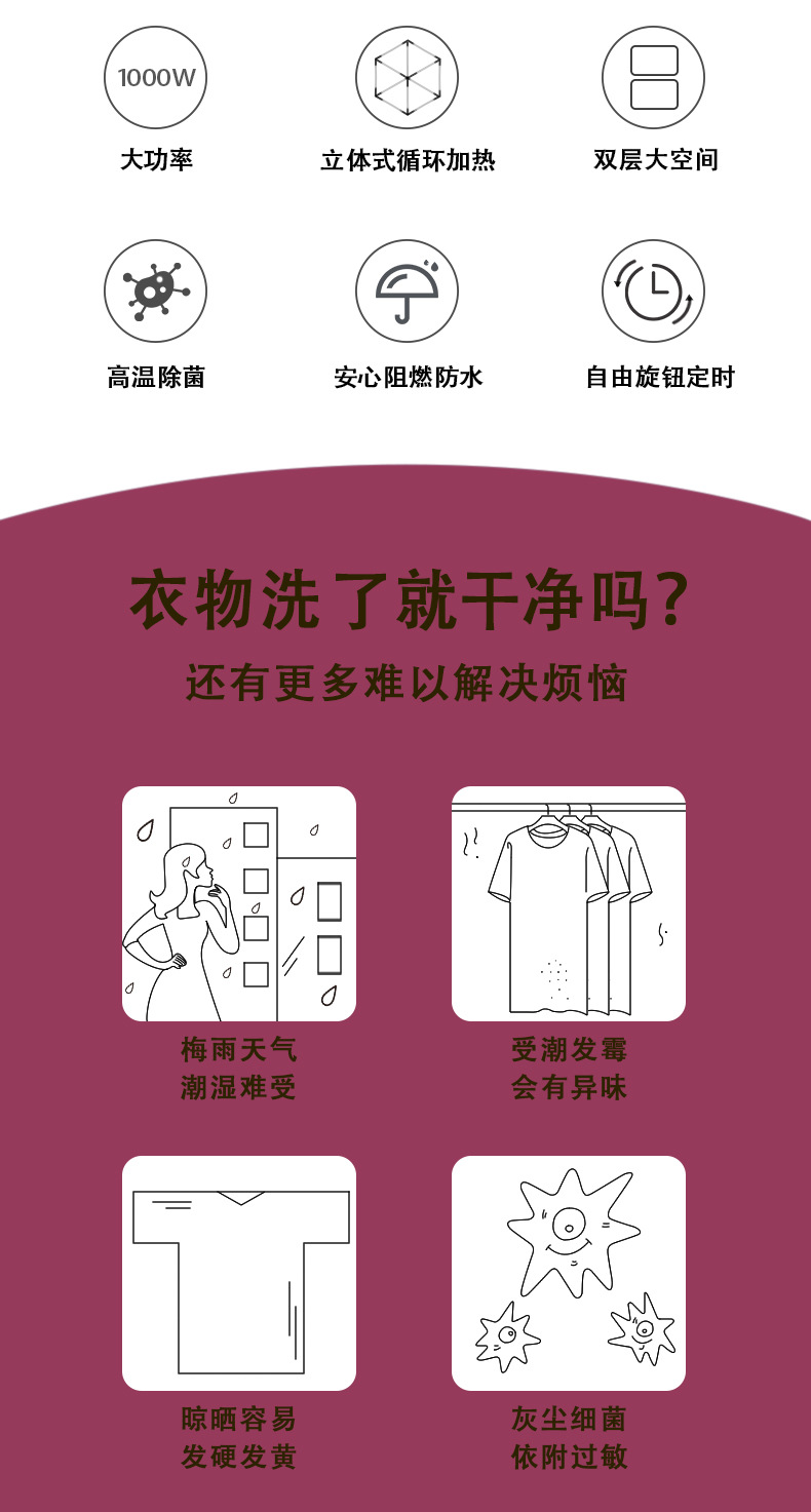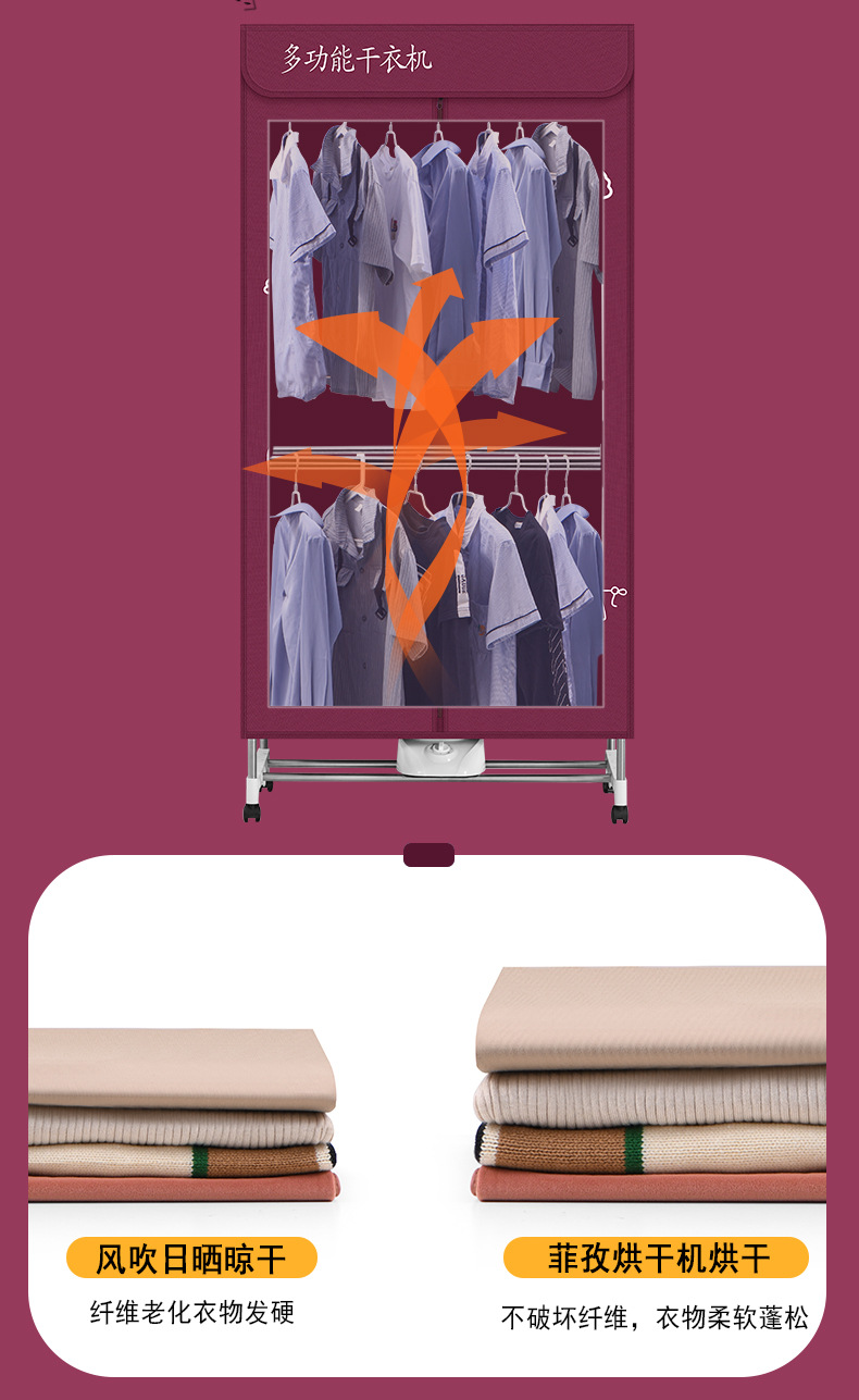 菲孜家用乾衣機靜音嬰兒烘乾衣櫃速乾衣服烘乾機雙層除蟎殺菌省電