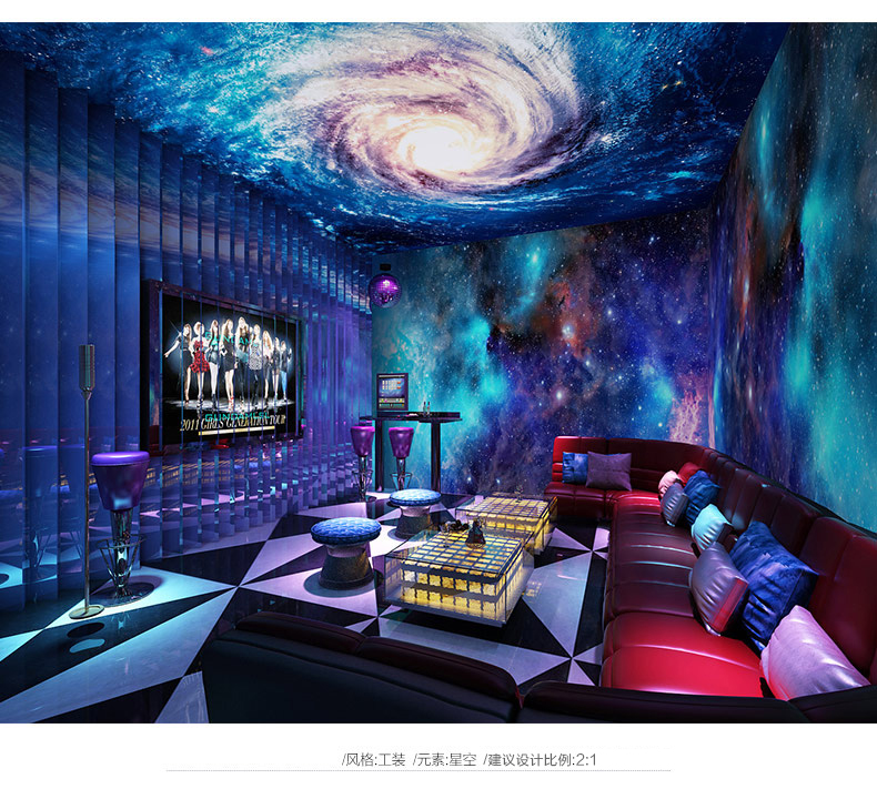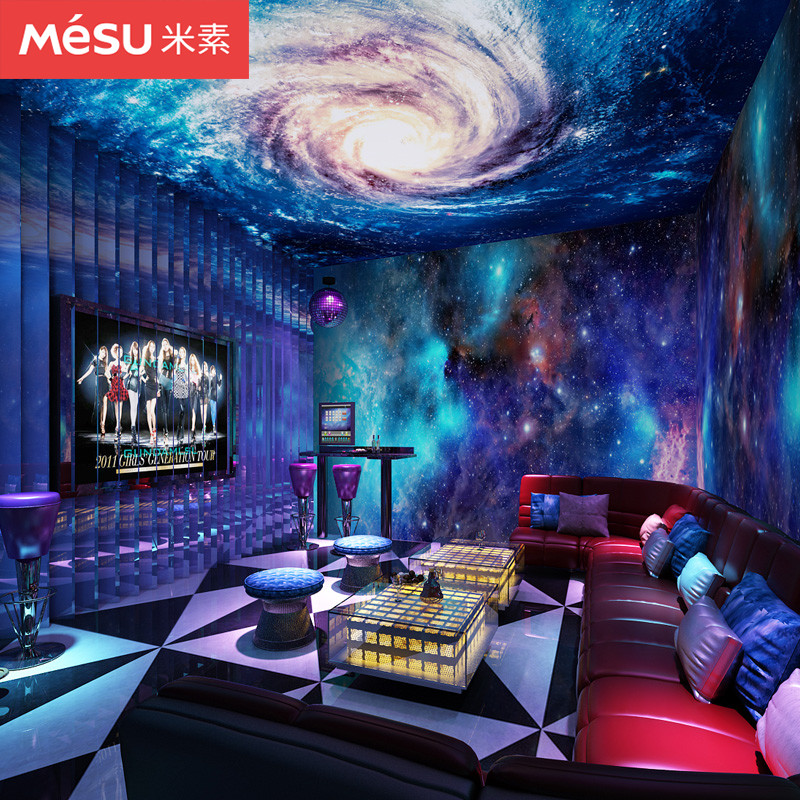米素 吊頂壁紙定製現代個性無縫壁畫3d酒吧ktv背景牆紙 宇宙星空