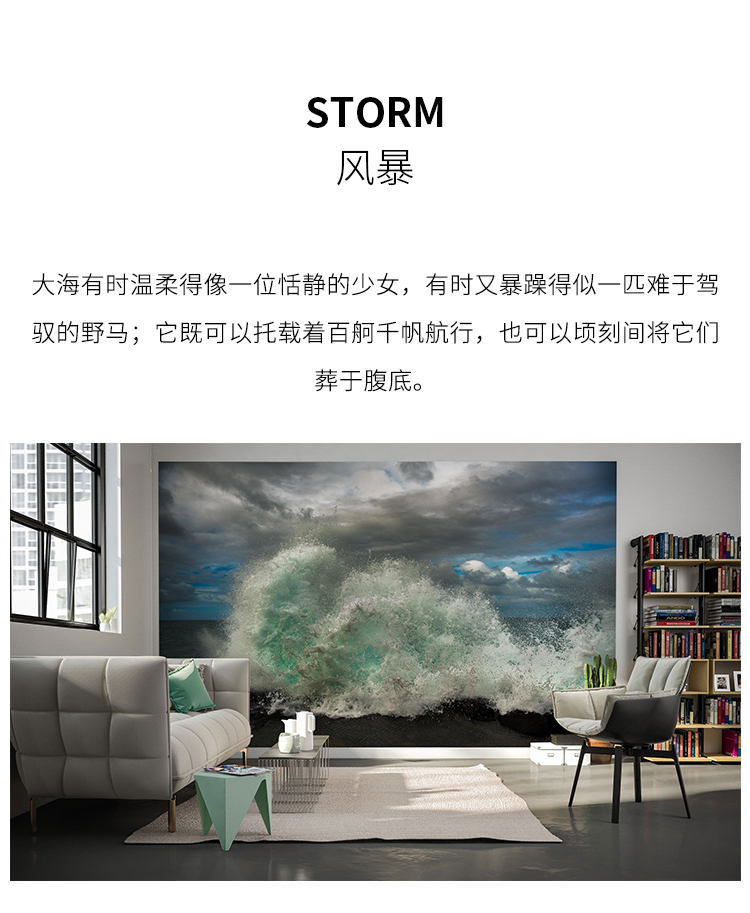 OXICO 瑞典進口3d磅礴大海壁畫臥室客廳餐廳藝術定製牆紙 風暴