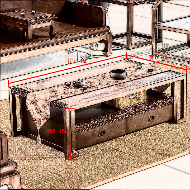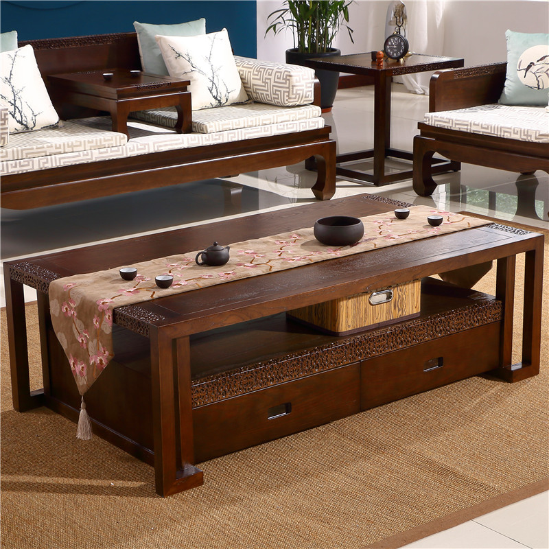 新中式實木茶几組合現代小戶型客廳茶水桌長茶几樣板房傢俱定製
