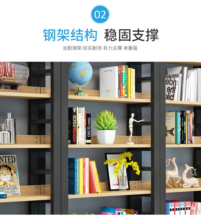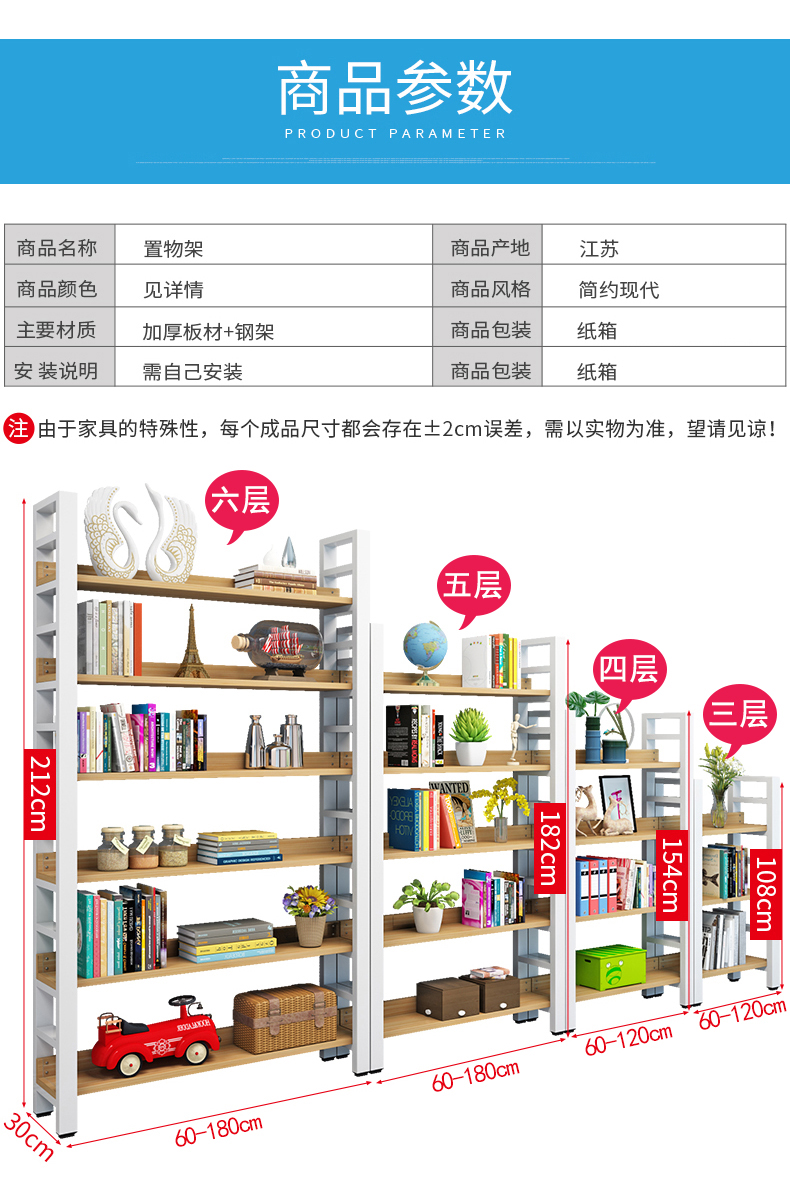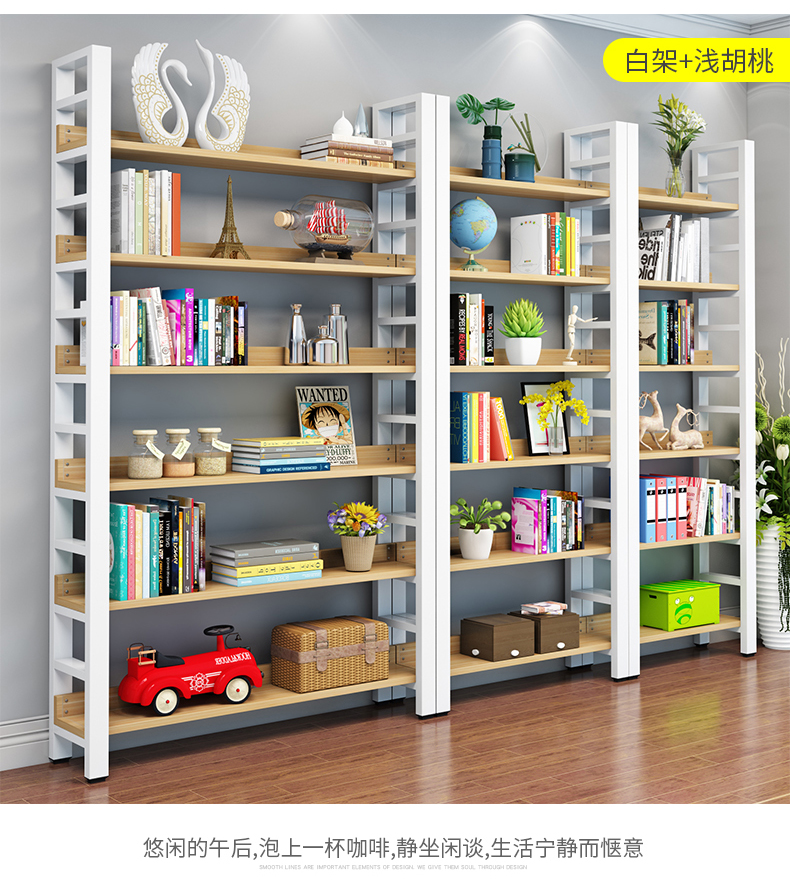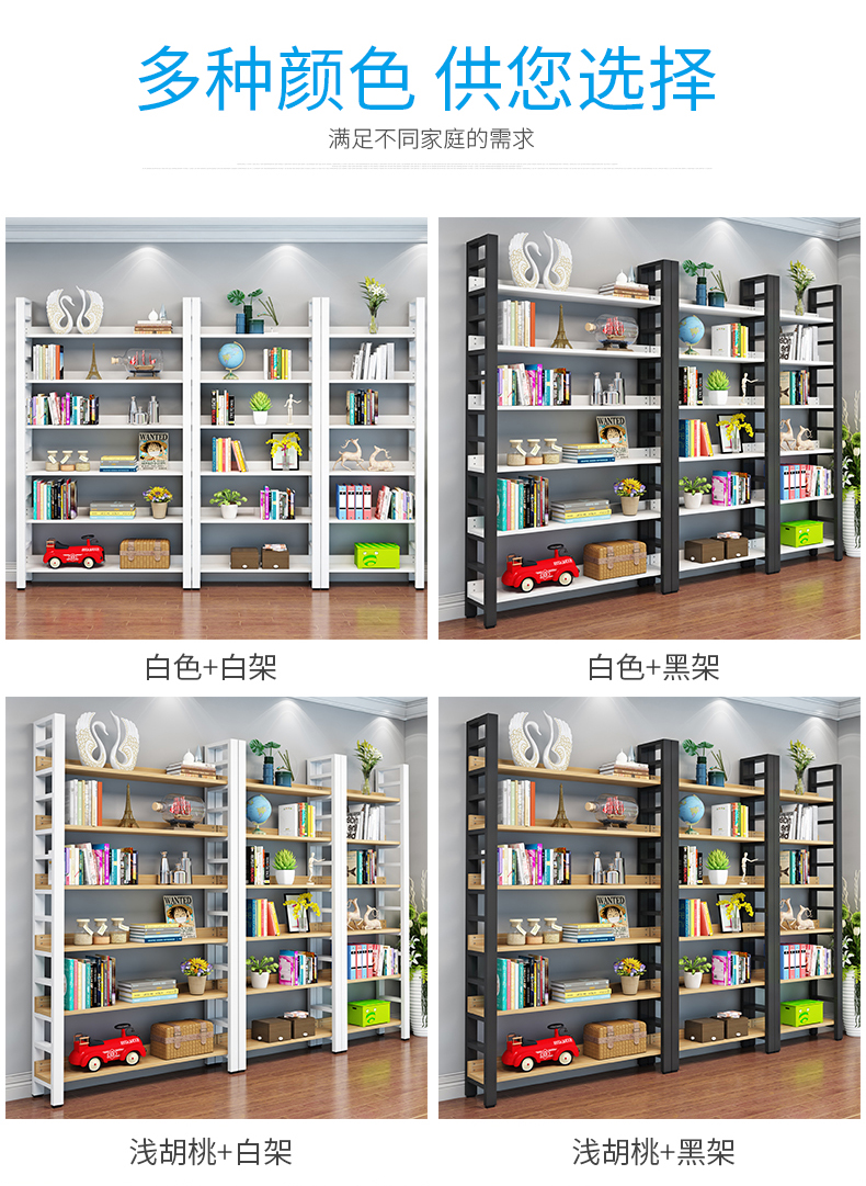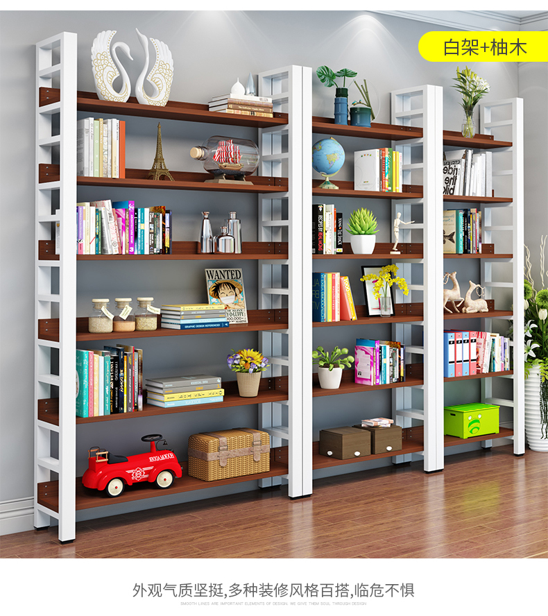 鋼木書架落地貨架客廳收納架隔板架子儲物櫃靠牆置物架臥室儲物架