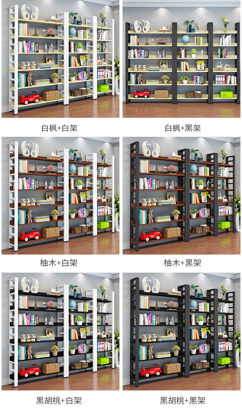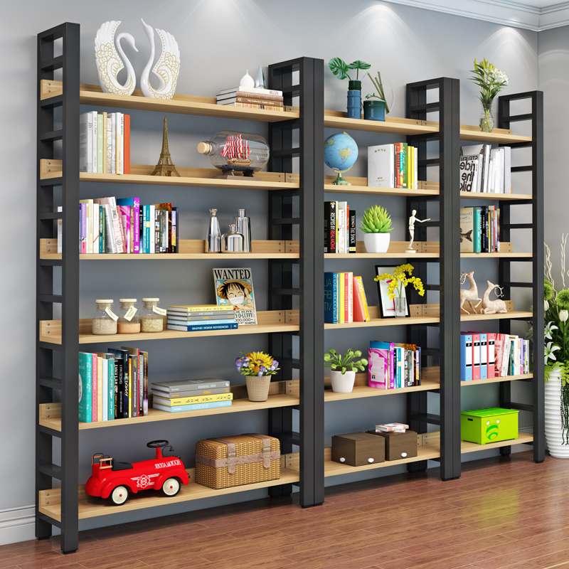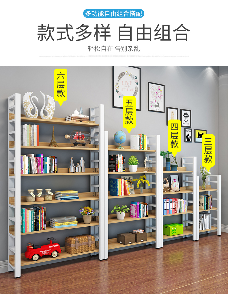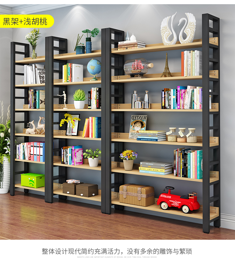 書架簡約客廳鋼木置物架鐵藝展示架子落地組合收納貨架多層儲物架
