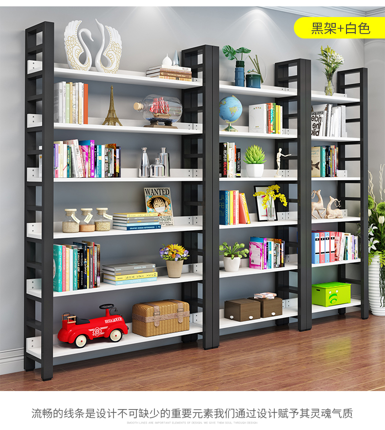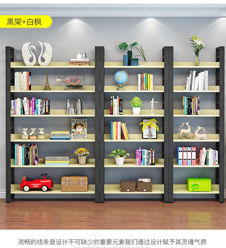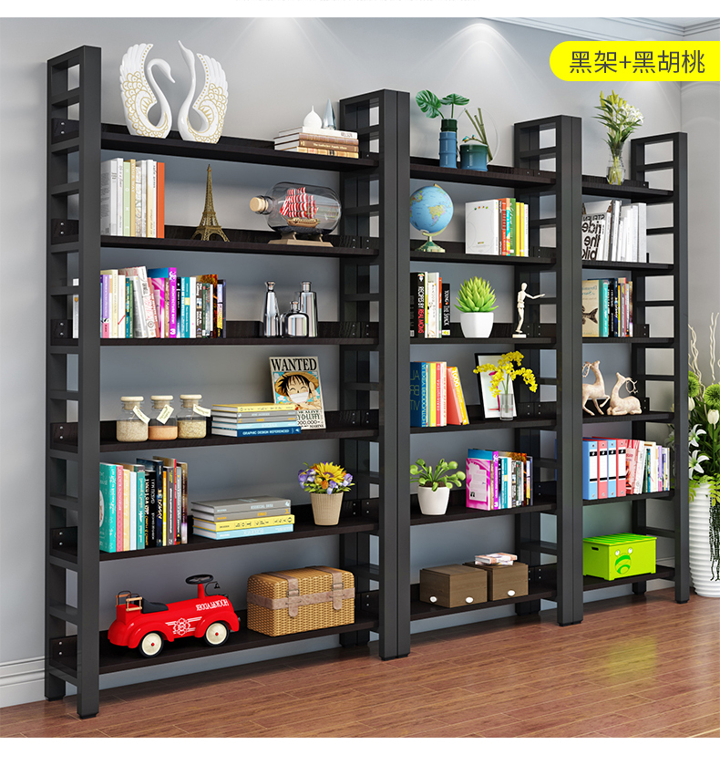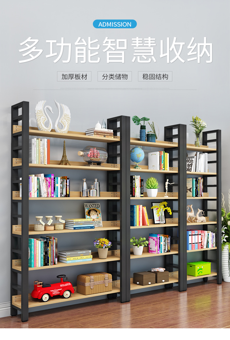 書架簡約客廳鋼木置物架鐵藝展示架子落地組合收納貨架多層儲物架