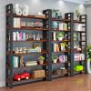 書架落地收納架簡易多層鋼木書櫃儲物貨架家用客廳鐵藝架子置物架