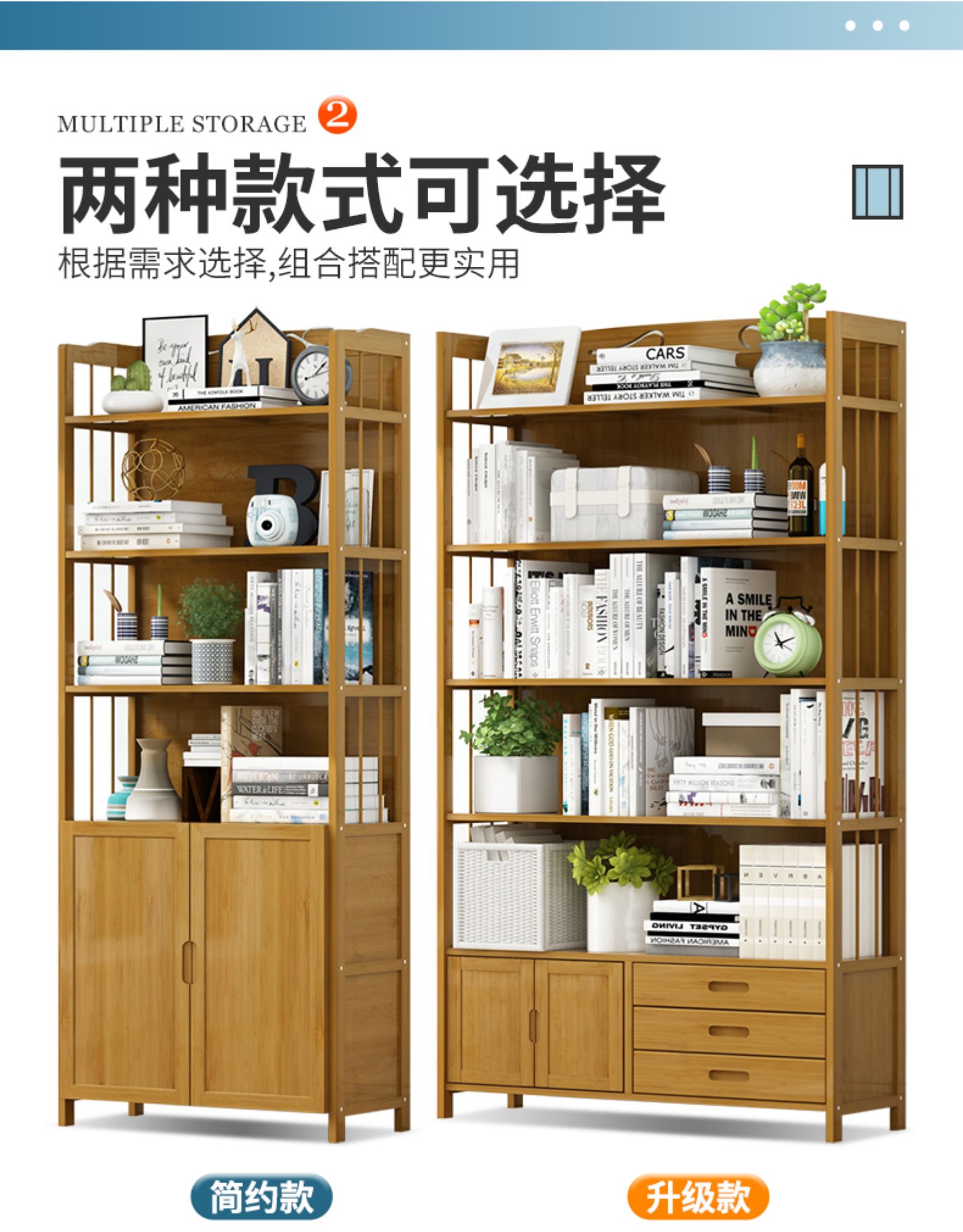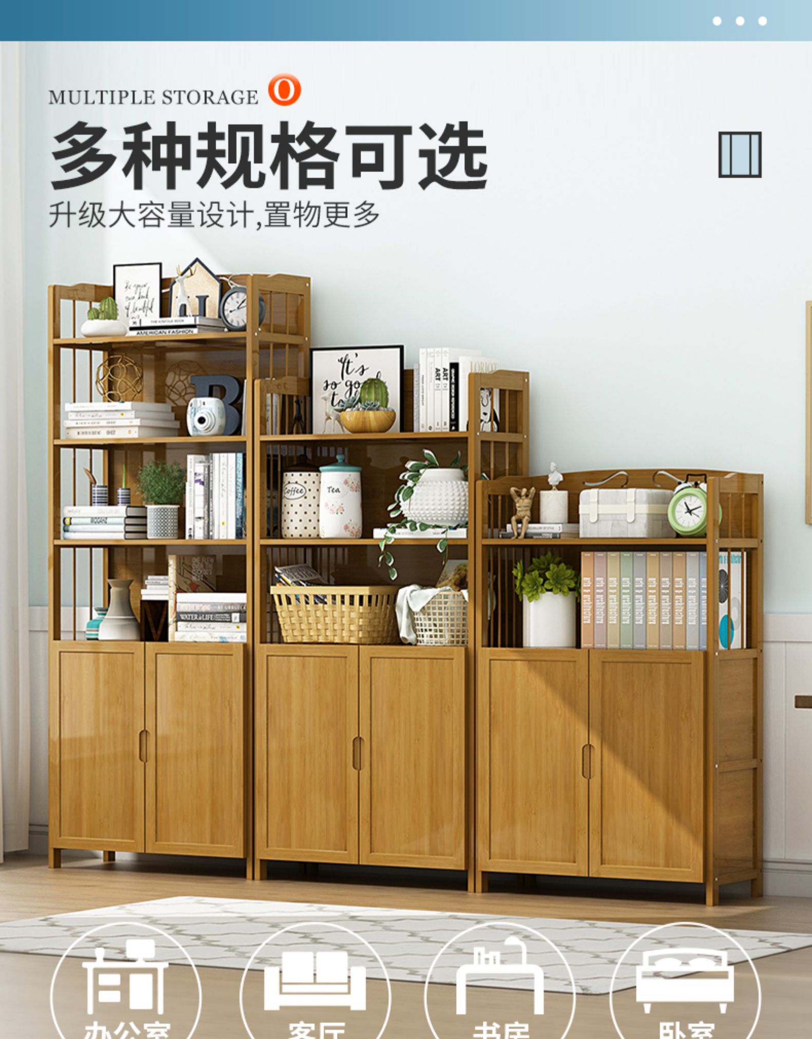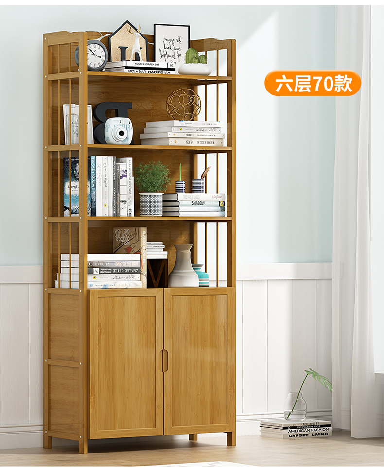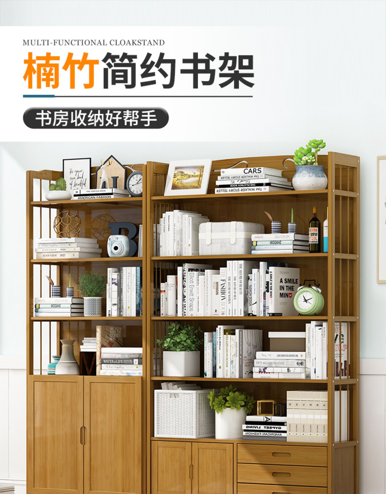 楠竹子書架置物兒童收納落地簡易帶門實木學生簡約客廳經濟型家用