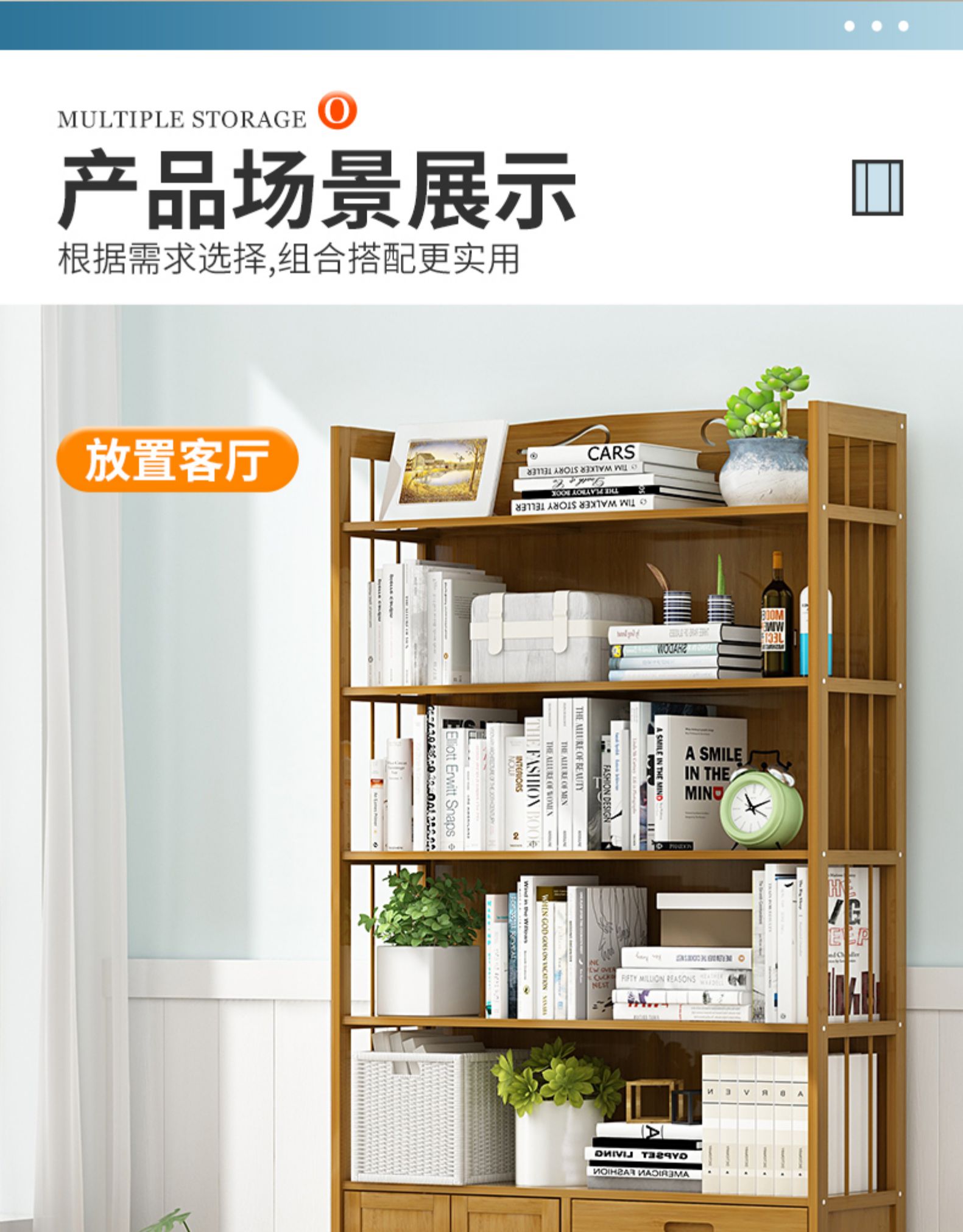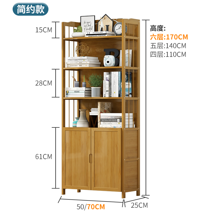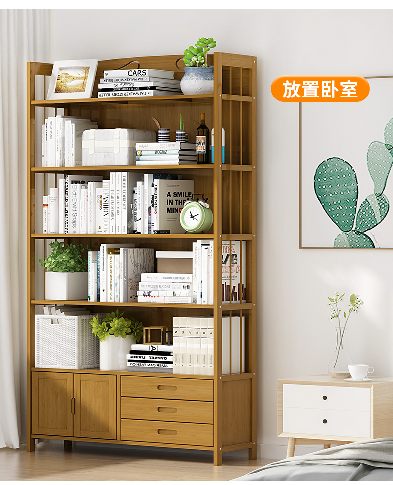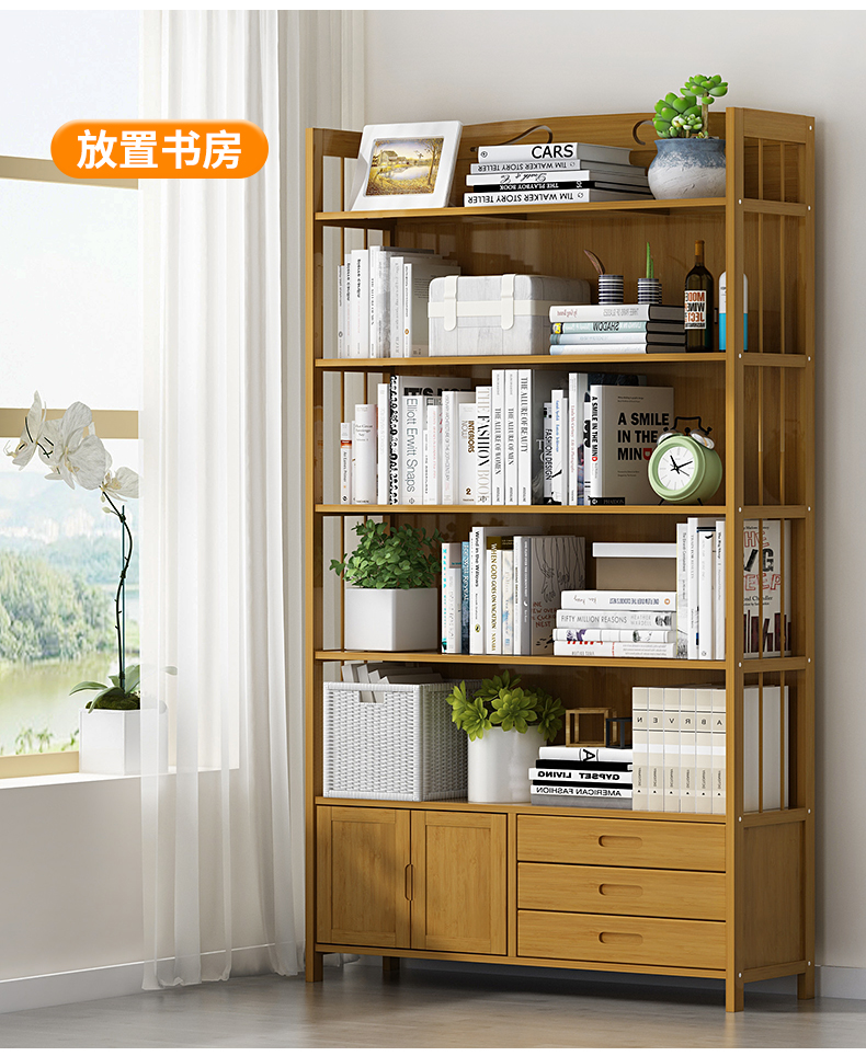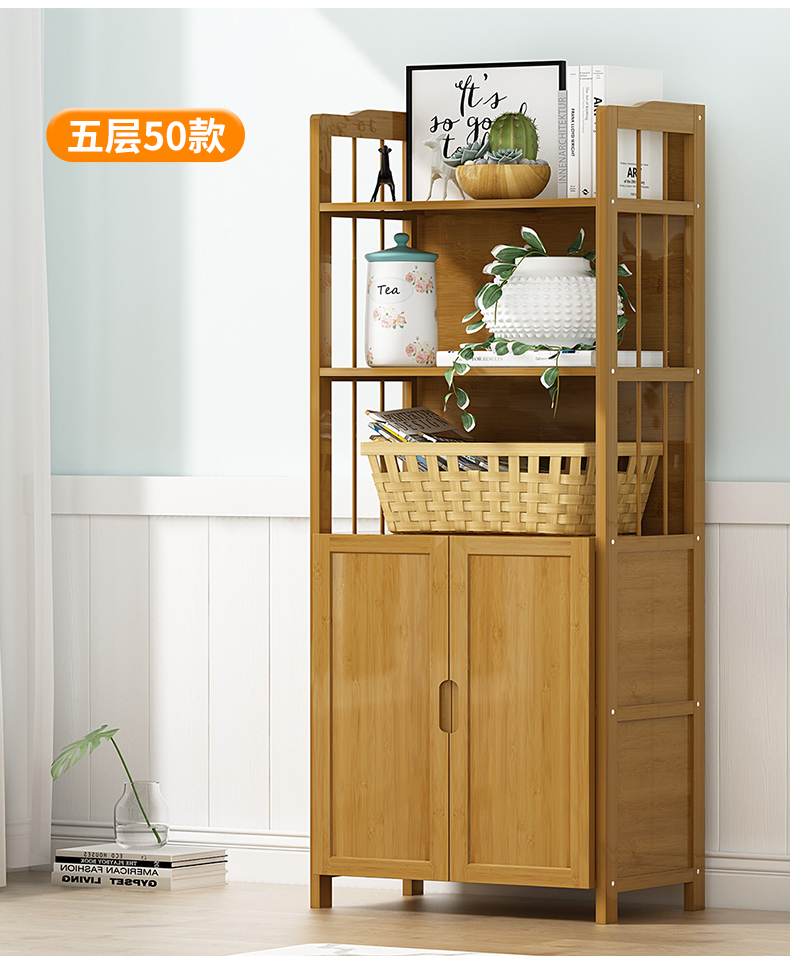 楠竹子書架置物兒童收納落地簡易帶門實木學生簡約客廳經濟型家用