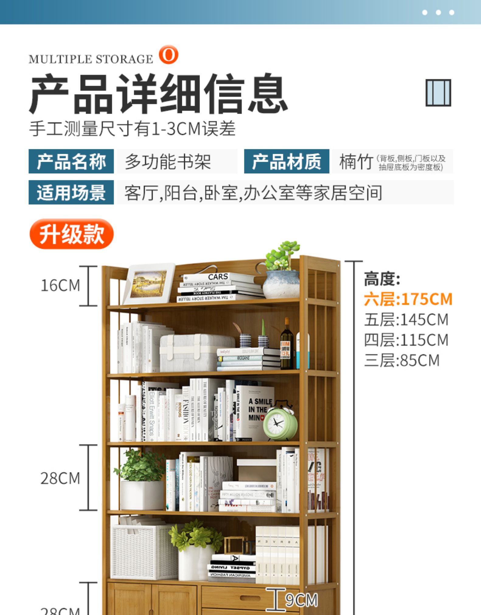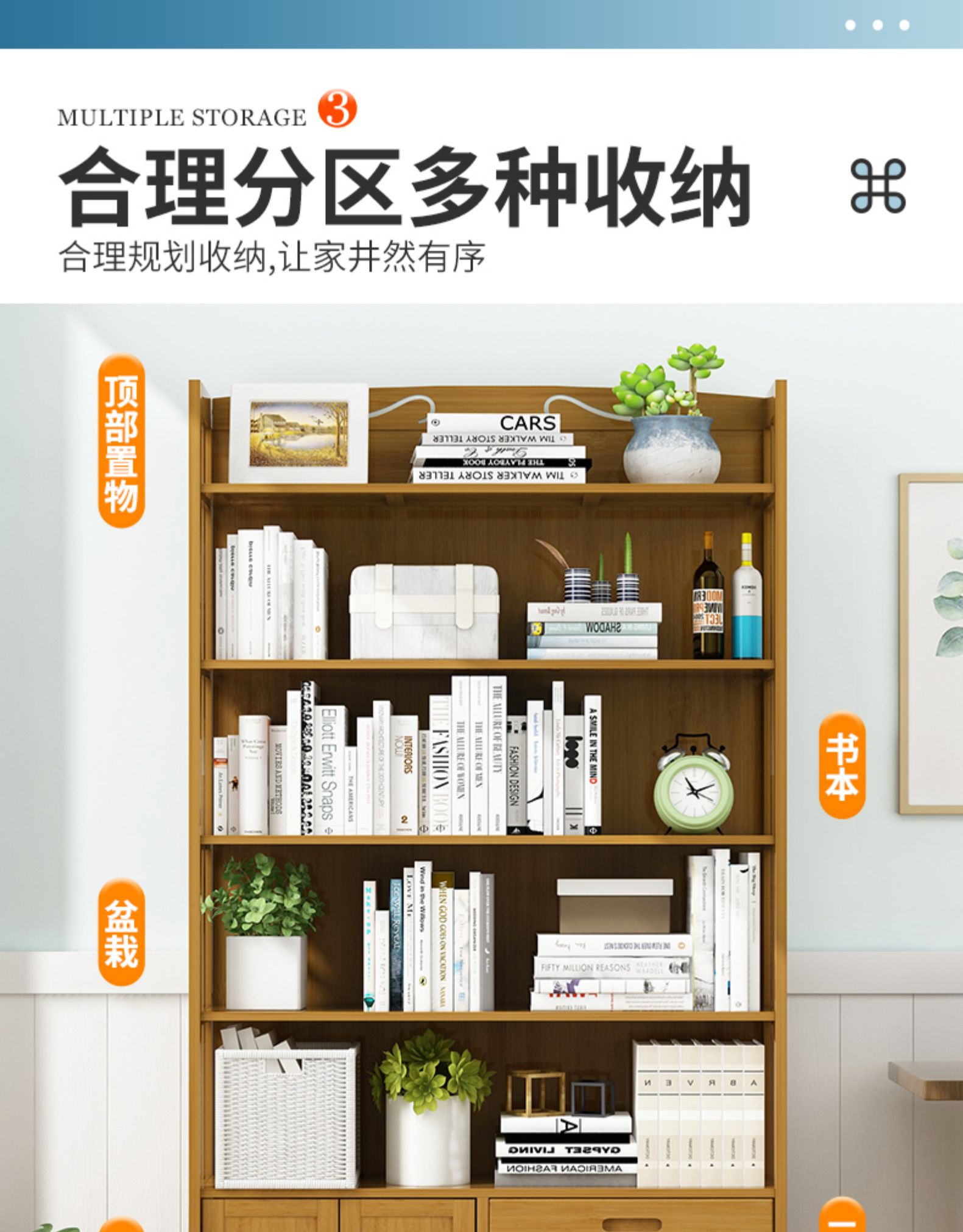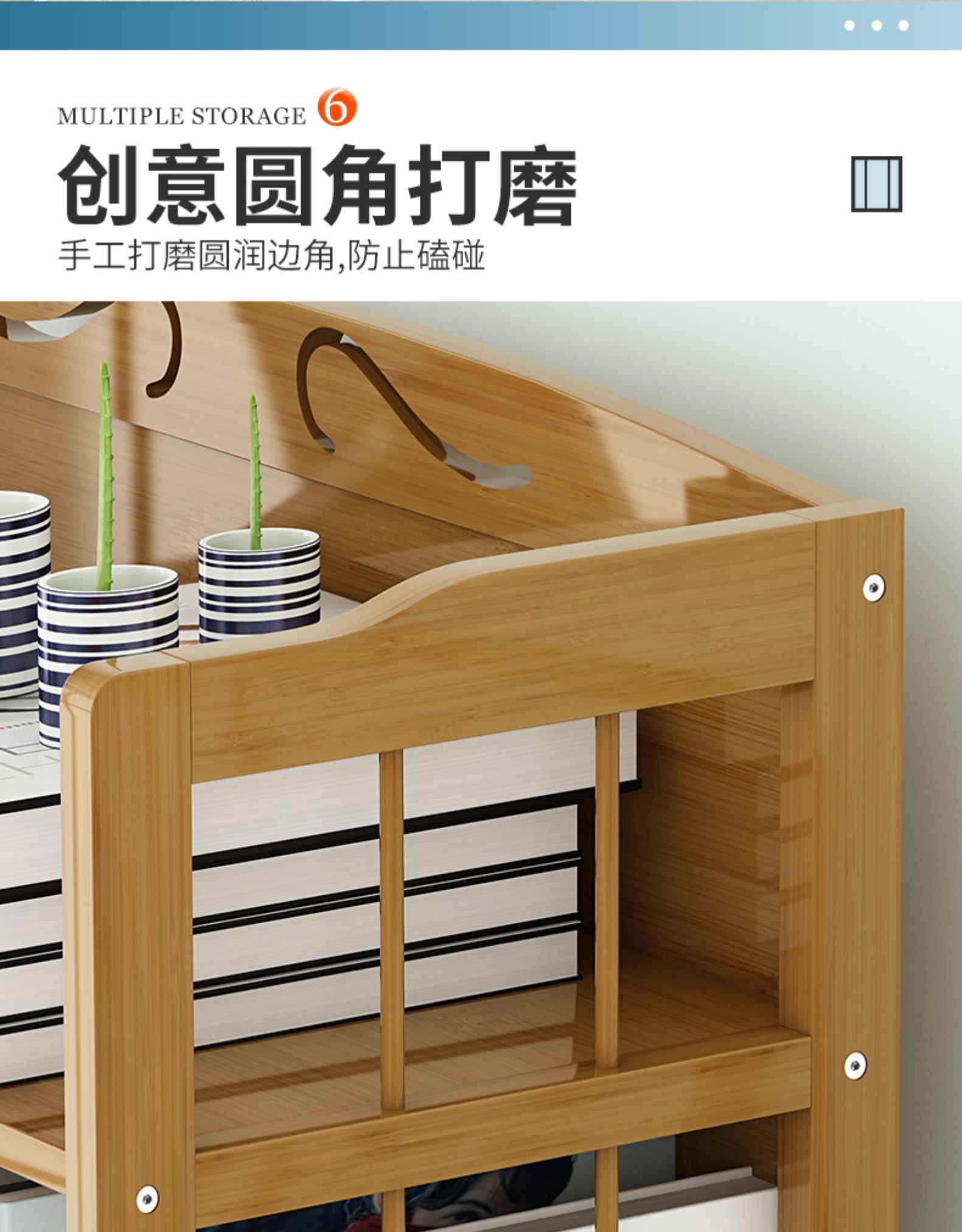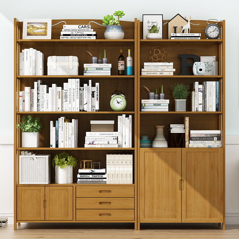 楠竹子書架置物兒童收納落地簡易帶門實木學生簡約客廳經濟型家用