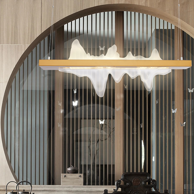 新中式餐廳燈禪意山水吊燈中國風茶室燈具中式客廳吊燈長條茶桌燈
