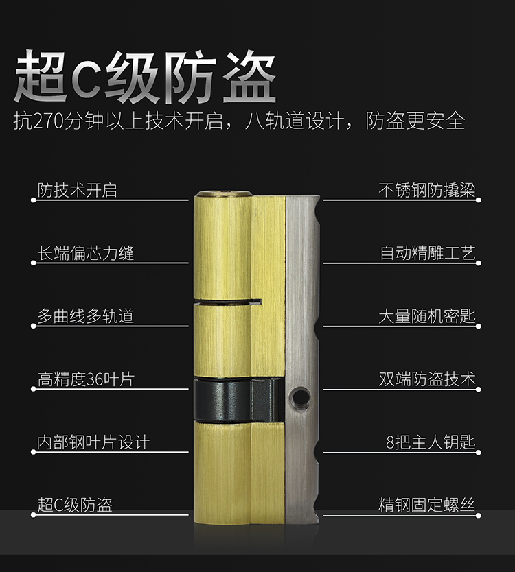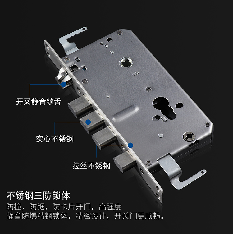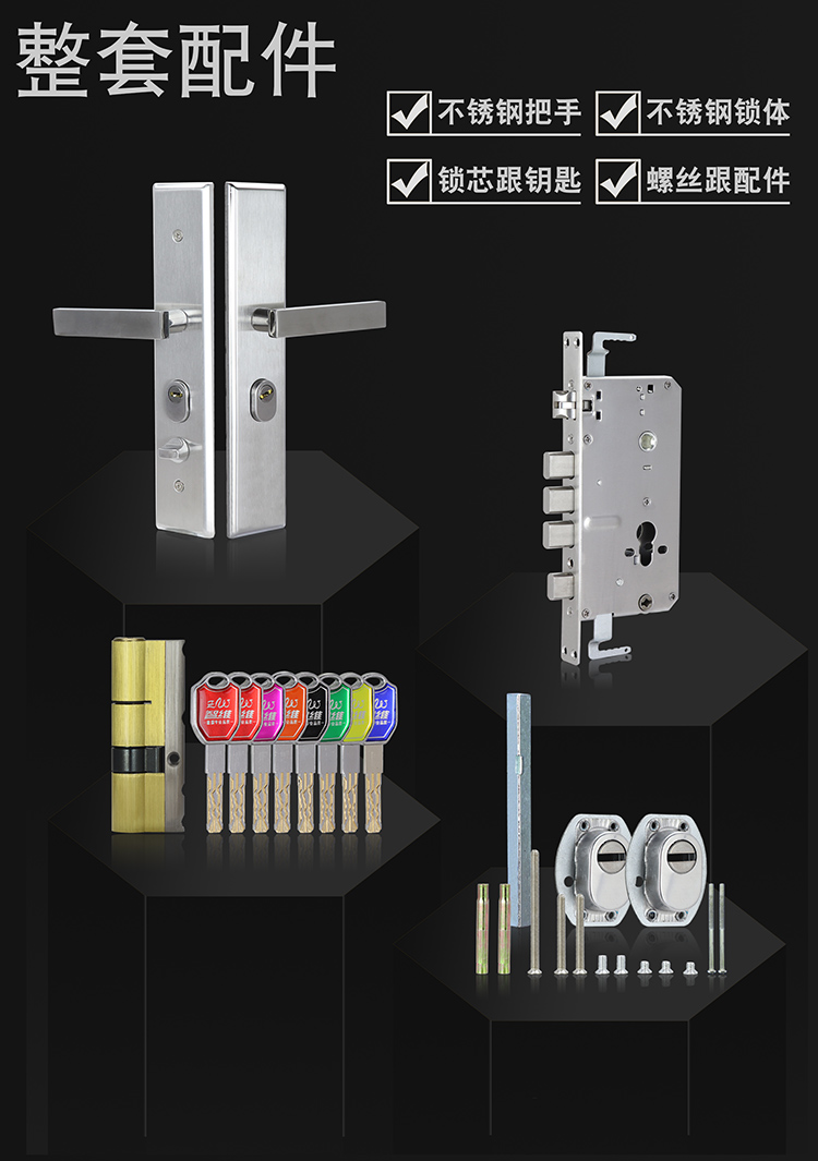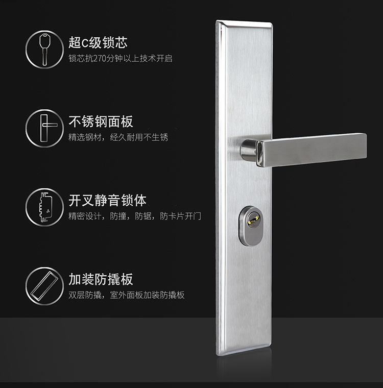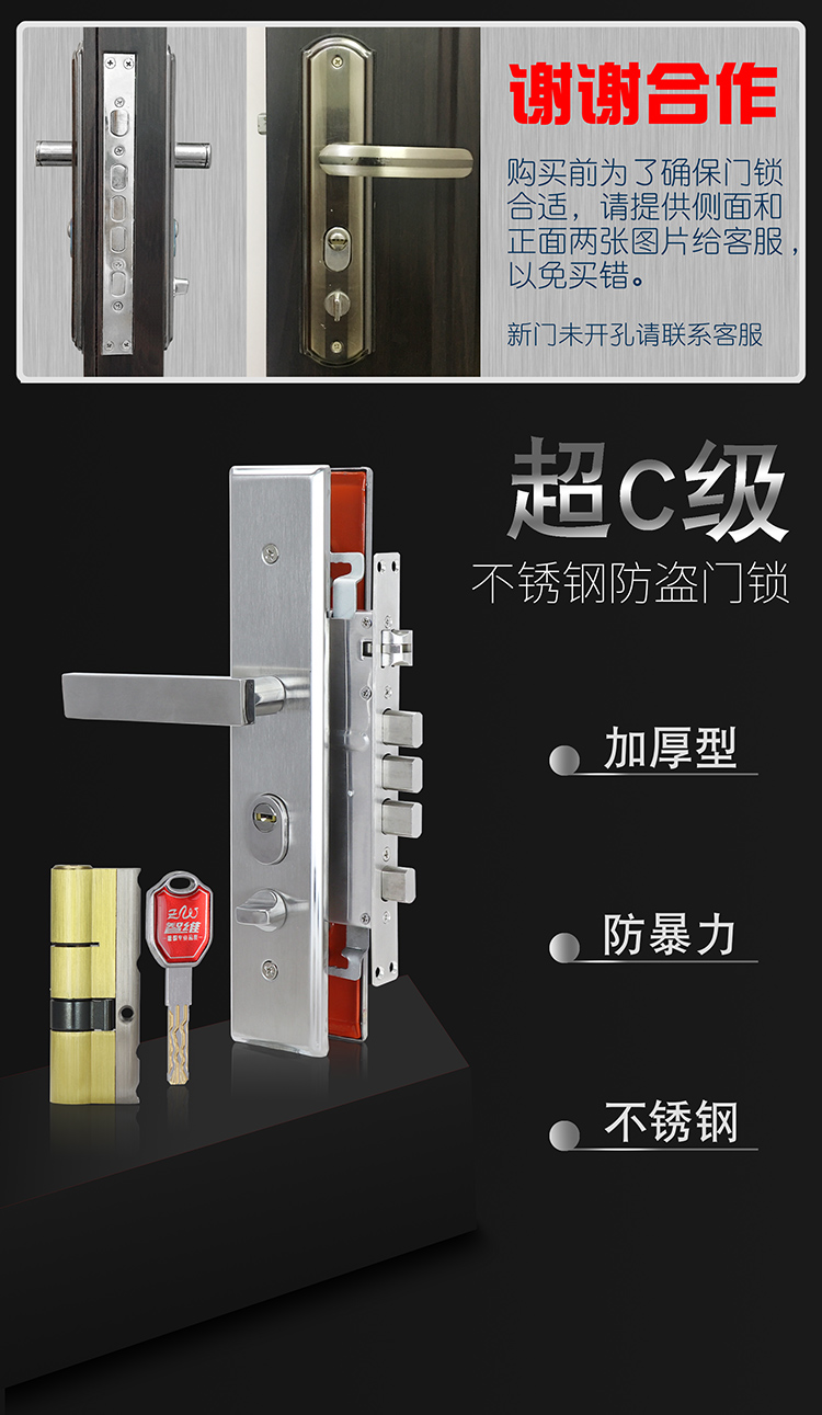 不鏽鋼大門防盜門鎖加厚面板把手鎖體C級鎖三件套木門鎖具套裝