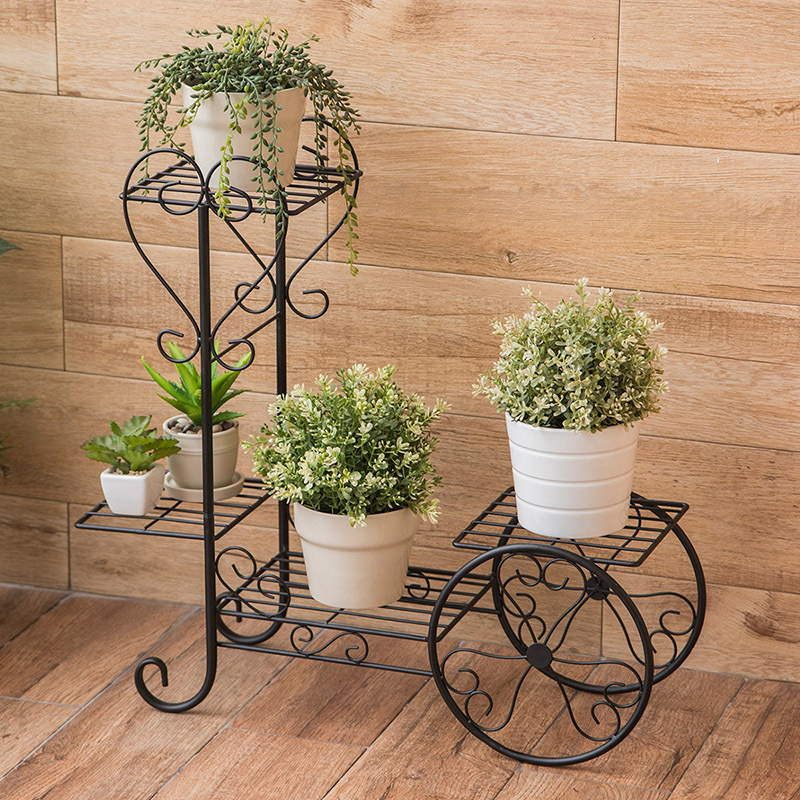 園藝中號黑色車型花盆架陽臺花園盆栽收納架亞馬遜特色設計花架