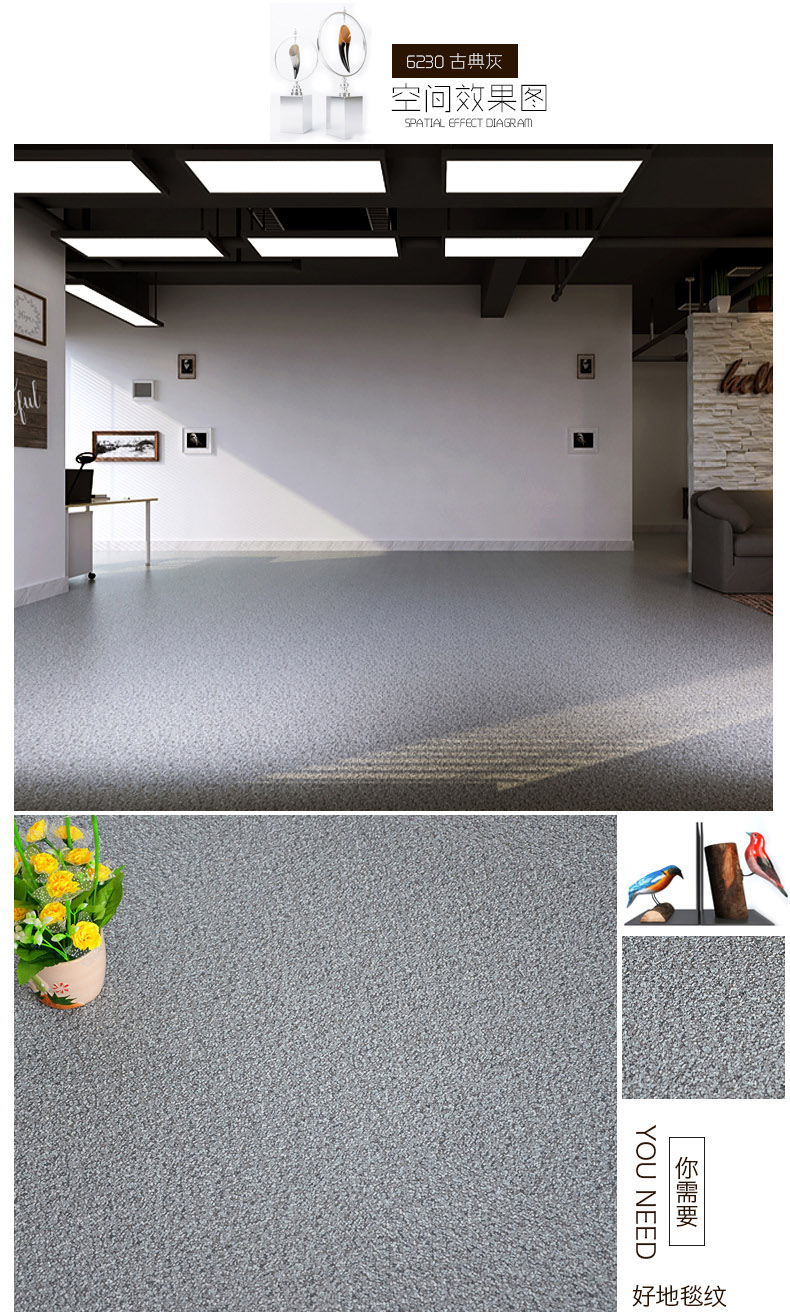 辦公室pvc塑膠地板廚房地板革防水地膠商用耐磨水泥地醫院地板貼
